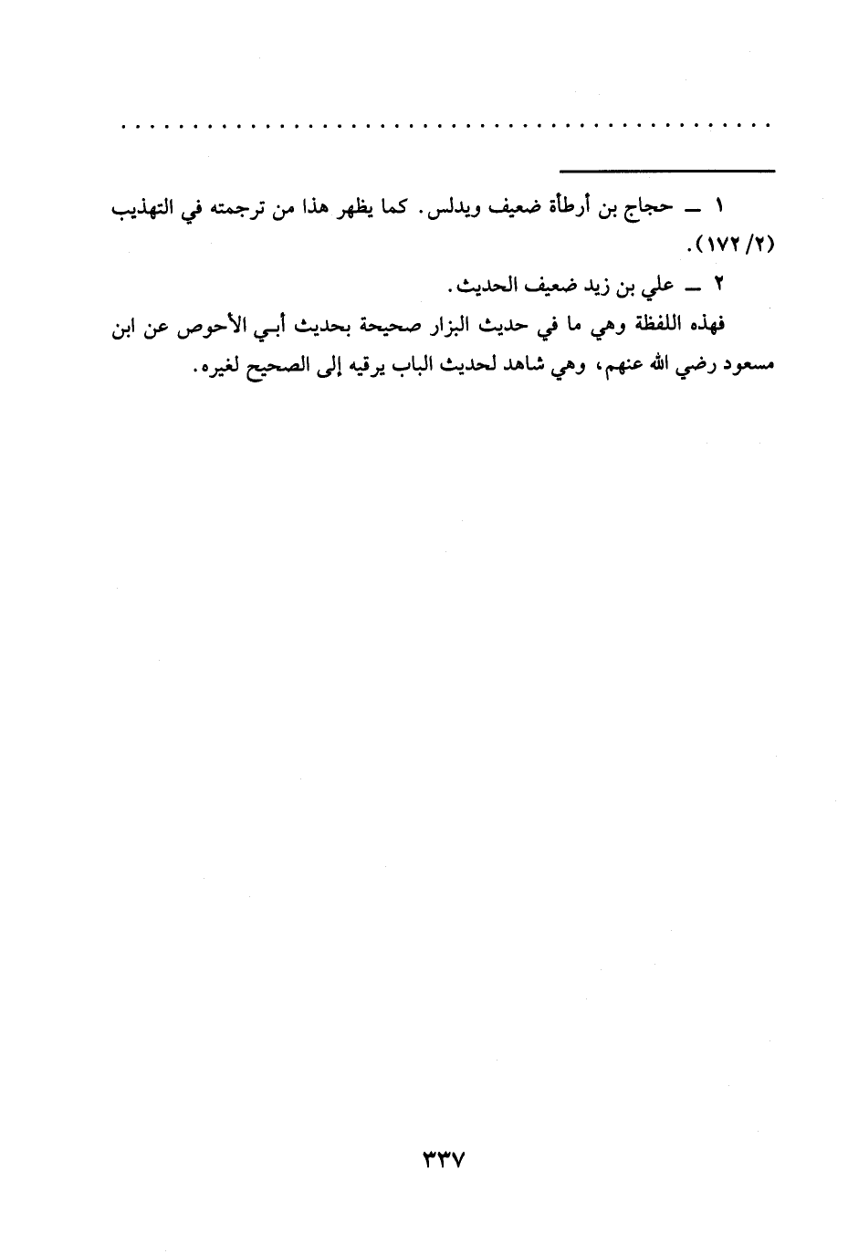 فهذه اللفظة وهي ما في حديث البزّار صحيحة بحديث أبي الأحوص عن ابن مسعود رضي الله عنهم، وهي شاهد لحديث الباب يرقيه إلى الصحيح لغيره.