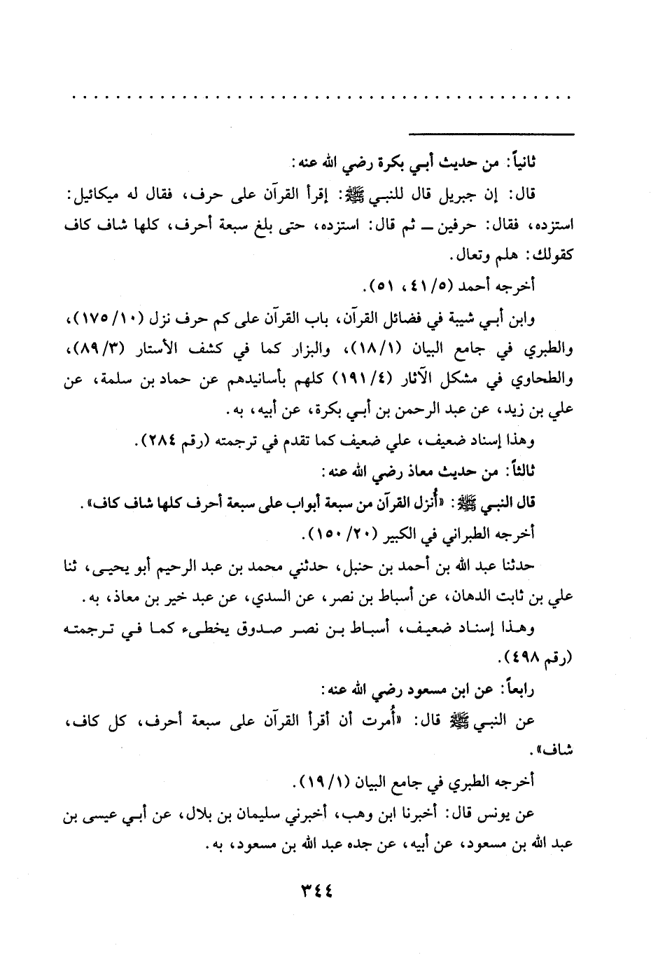 وابن أبي شيبة في فضائل القرآن، باب القرآن على كم حرف نزل (10/ 175)، والطبري في جامع البيان (1/ 18)، والبزار كما في كشف الأستار (3/ 89)، والطحاوي في مشكل الآثار (4/ 191) كلهم بأسانيدهم عن حَمَّادُ بْنُ سَلَمَةَ، عَنْ عَلِيِّ بْنِ زَيْدٍ، عَنْ عَبْدِ الرَّحْمَنِ بْنِ أَبِي بَكْرَةَ، عَنِ أبيه، به.
