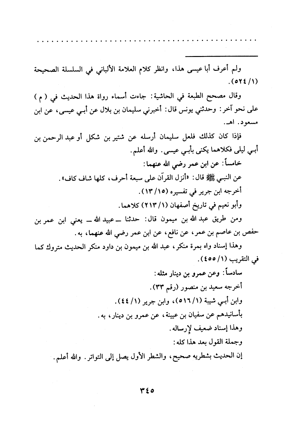 فإذا كان كذلك فلعل سليمان أرسله عن شتير بن شكل أو عبد الرحمن بن أبي ليلى فكلاهما يكنى بأبي عيسى. والله أعلم.