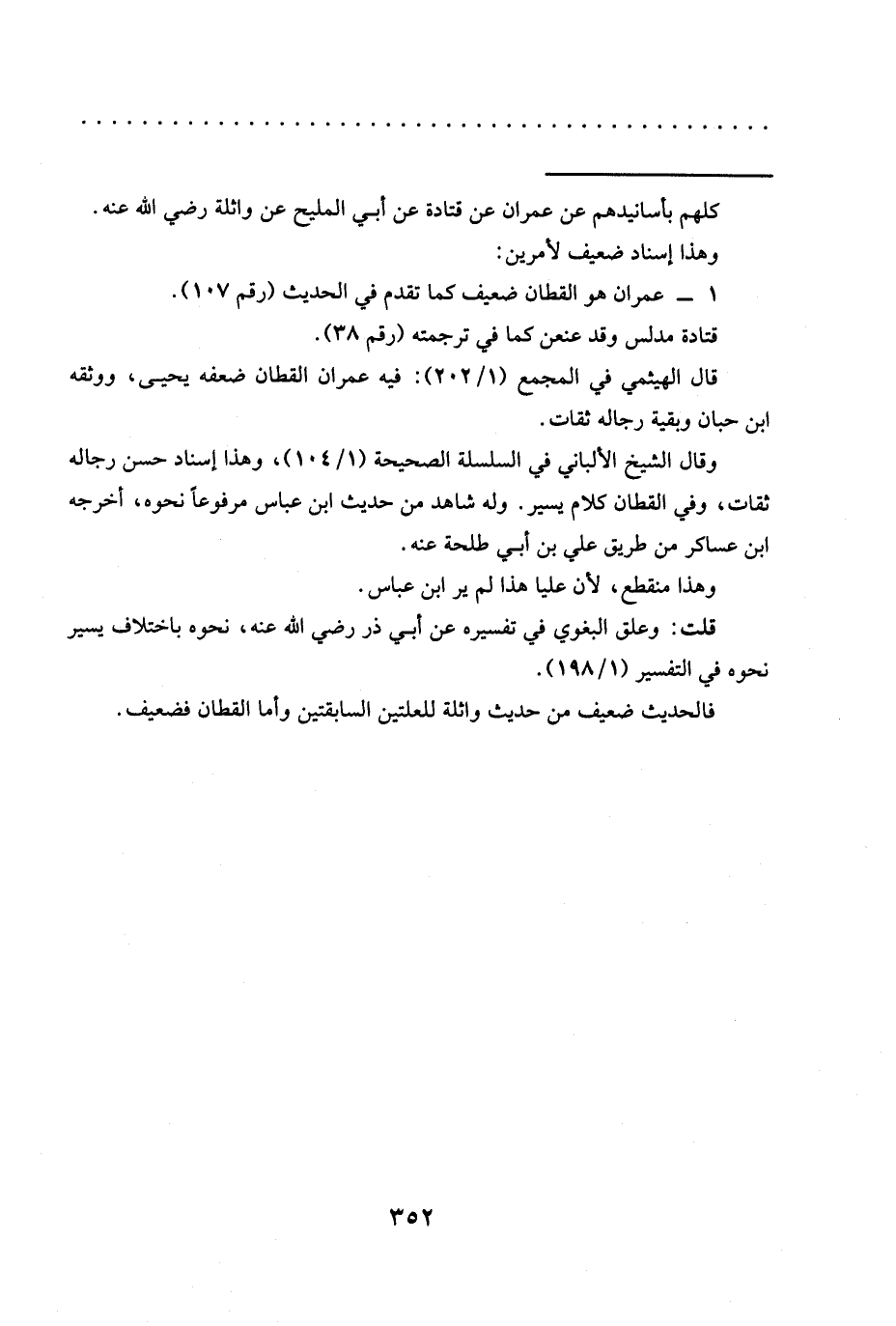 = كلهم بأسانيدهم عن عمران عن قتادة عن أبي المليح عن واثلة رضي الله عنه.