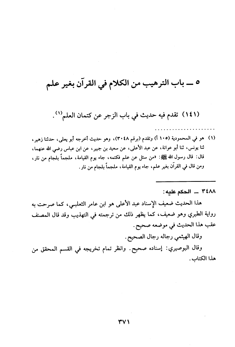 (5 - بَابُ التَّرْهِيبِ مِنَ الْكَلَامِ فِي الْقُرْآنِ بِغَيْرِ عِلْمٍ)