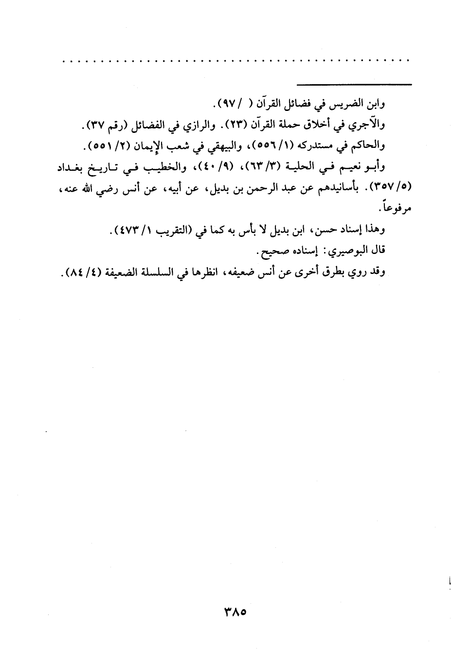 والآجري في أخلاق حملة القرآن (23). والرازي في الفضائل (رقم 37).