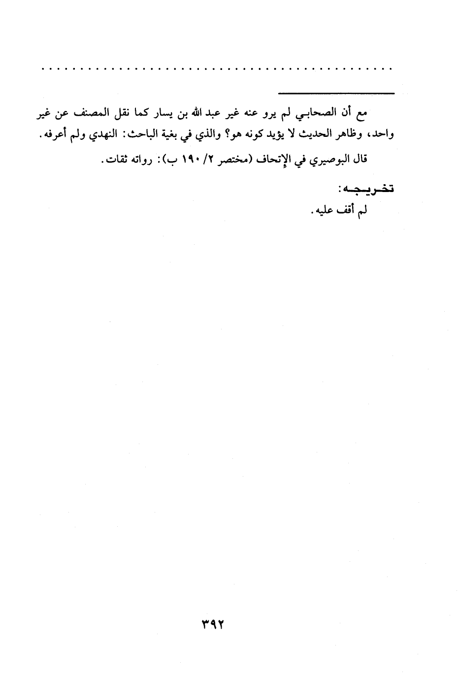 = مع أن الصحابي لم يرو عنه غير عبد الله بن يسار كما نقل المصنف عن غير واحد، وظاهر الحديث لا يؤيد كونه هو؟ والذي في بغية الباحث: النهدي ولم أعرفه.