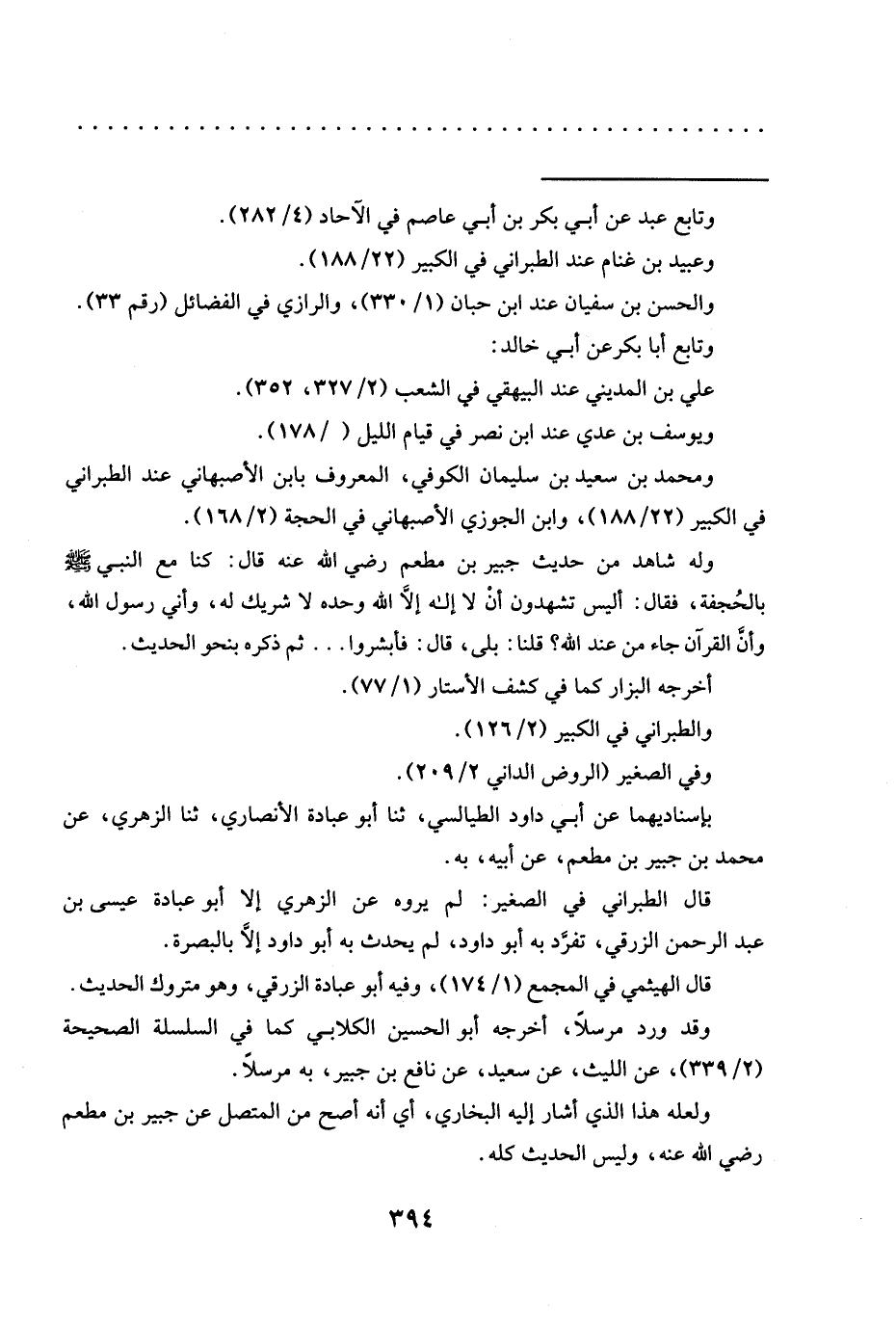 ولعله هذا الذي أشار إليه البخاري، أي أنه أصح من المتصل عَنْ جُبَيْرِ بْنِ مُطْعِمٍ رَضِيَ اللَّهُ عَنْهُ، وليس الحديث كله.