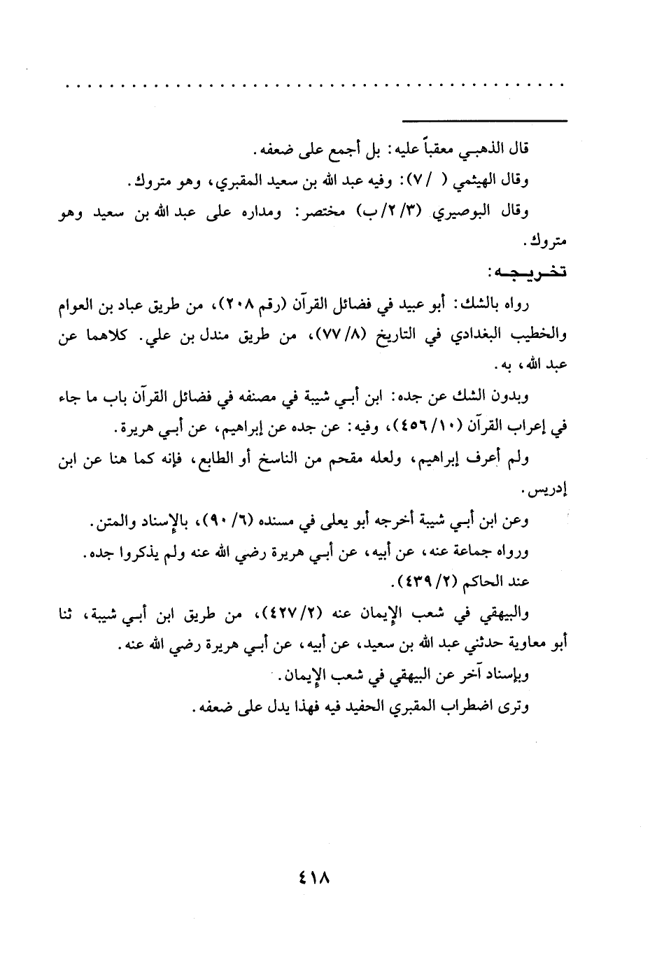 رواه بالشك: أبو عبيد في فضائل القرآن (رقم 208)، من طريق عبّاد بن العوام والخطيب البغدادي في التاريخ (8/ 77)، من طريق مندل بن علي. كلاهما عن عبد الله، به.