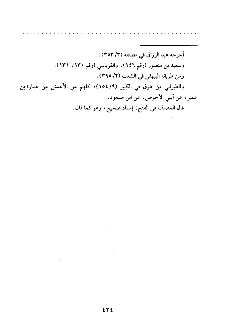 والطبراني من طرق في الكبير (9/ 154)، كلهم عن الأعمش عن عمارة بن عمير، عَنِ أَبِي الْأَحْوَصِ، عَنِ ابْنِ مَسْعُودٍ.