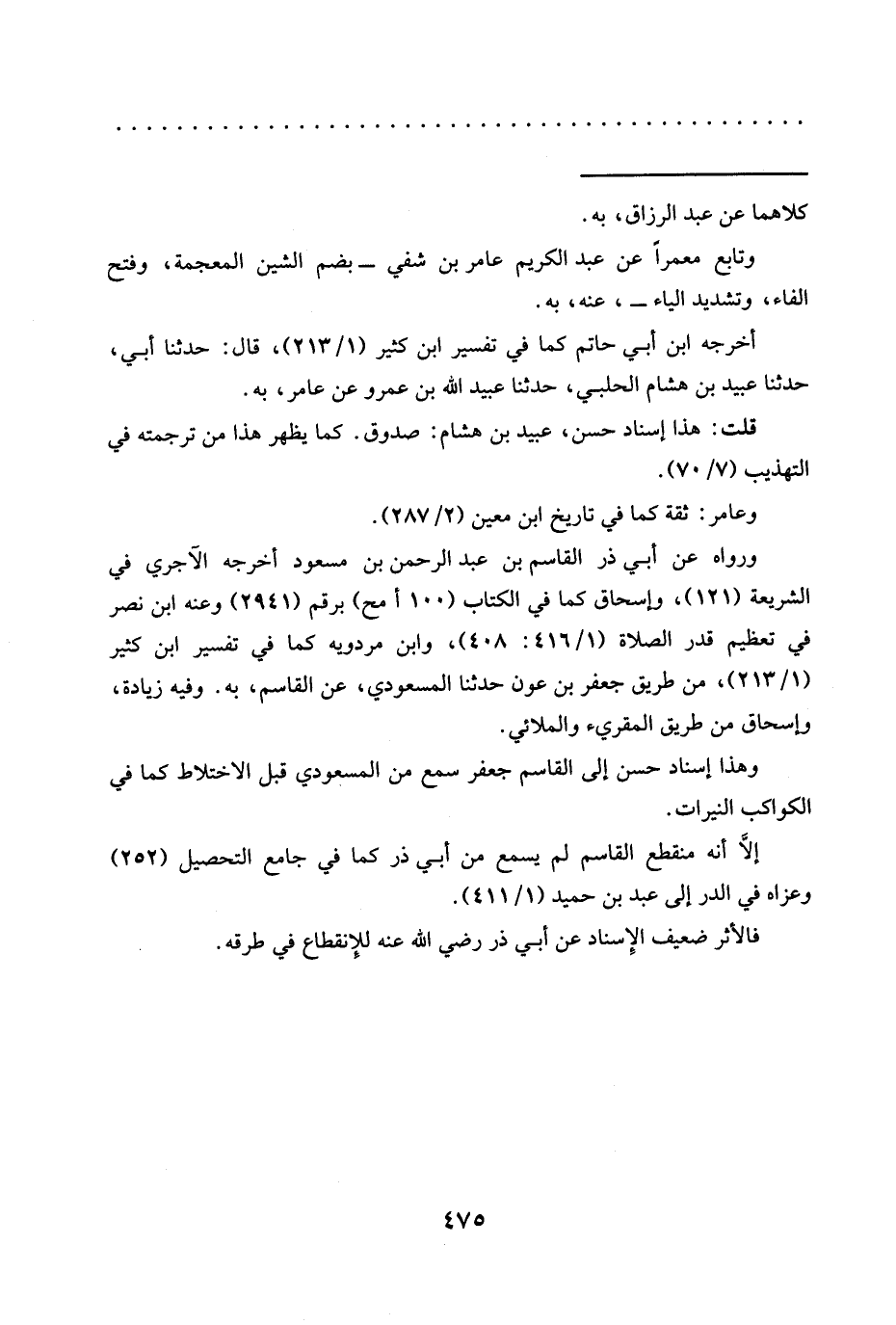 وهذا إسناد حسن إلى القاسم جعفر سمع من المسعودي قبل الاختلاط كما في الكواكب النيرات.