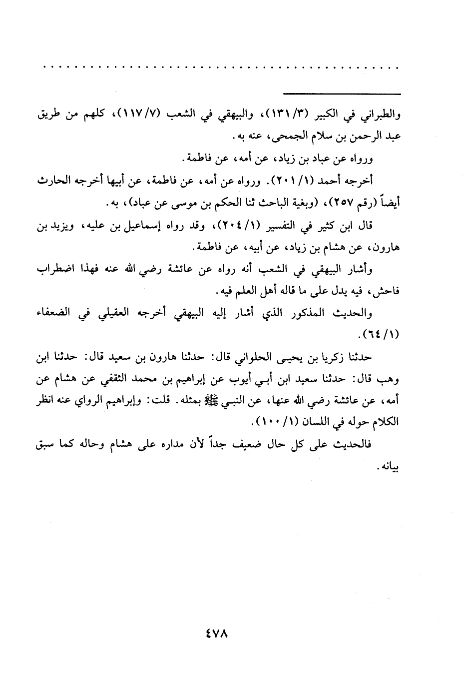 قال ابن كثير في التفسير (1/ 204)، وقد رواه إسماعيل بن عليه، ويزيد بن هارون، عن هشام بن زياد، عن أبيه، عن فاطمة.
