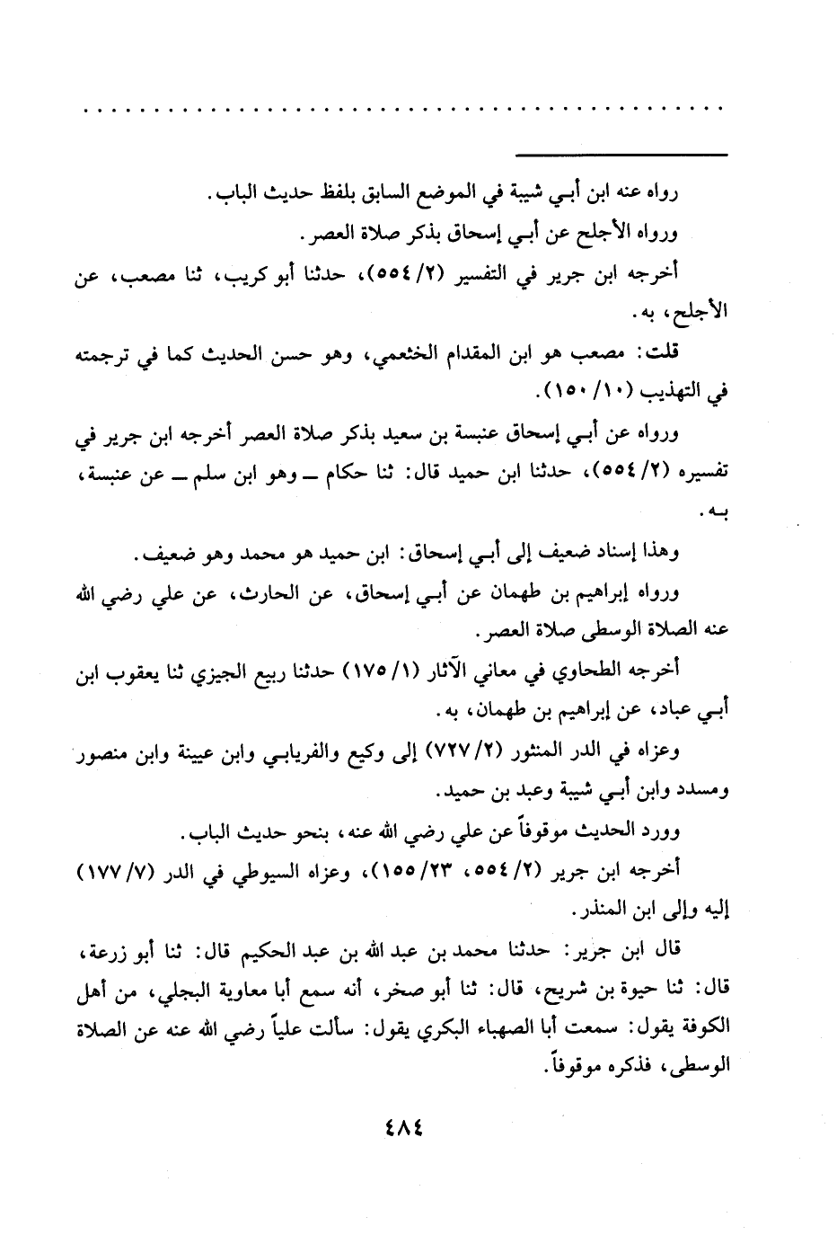 ورواه إِبْرَاهِيمُ بْنُ طَهْمَانَ عَنْ أَبِي إِسْحَاقَ، عَنْ الْحَارِثِ، عَنْ عَلِيٍّ رضي الله عنه الصلاة الوسطى صلاة العصر.
