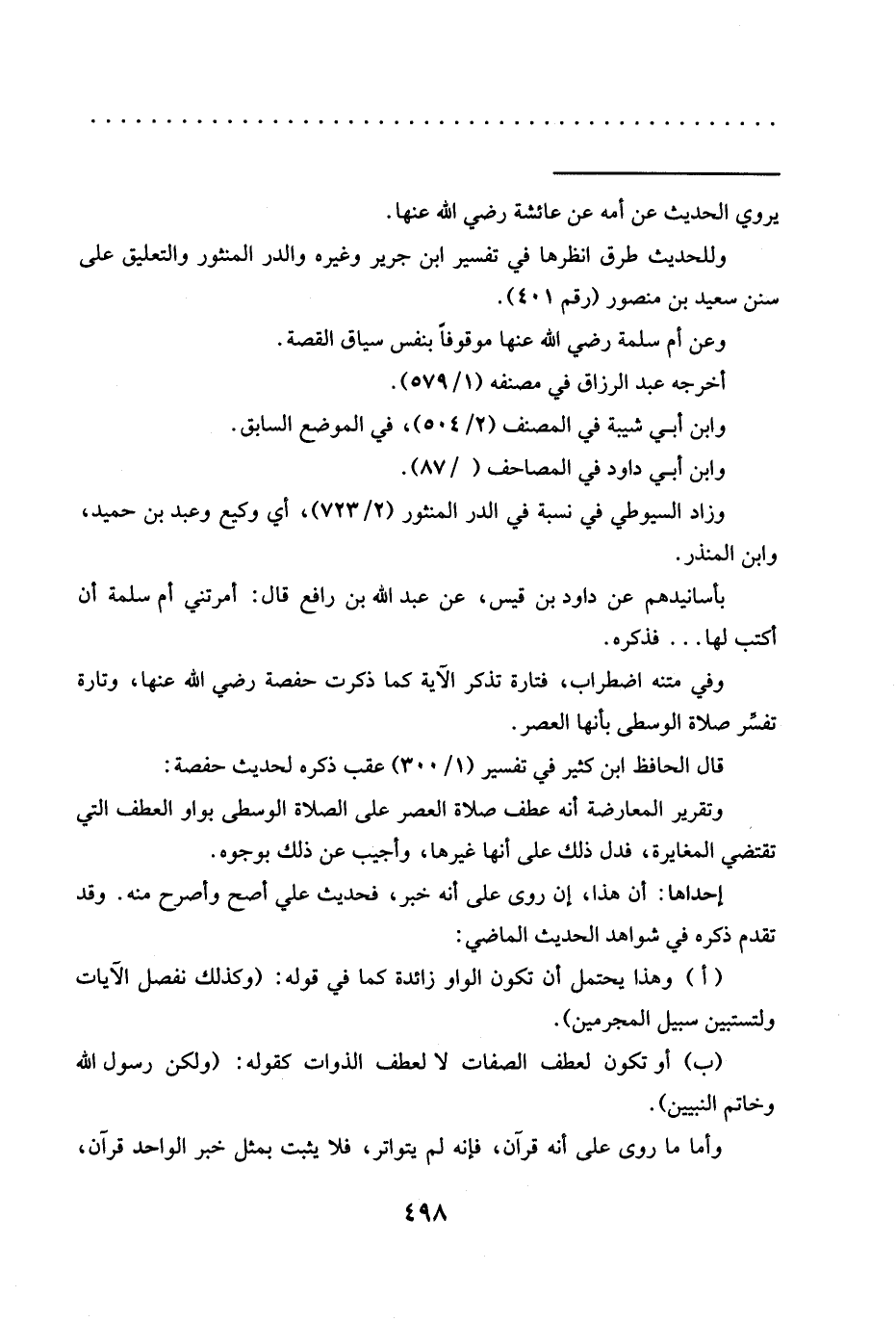 وفي متنه اضطراب، فتارة تذكر الآية كما ذكرت حفصة رضي الله عنها، وتارة تفسِّر صلاة الوسطى بأنها العصر.