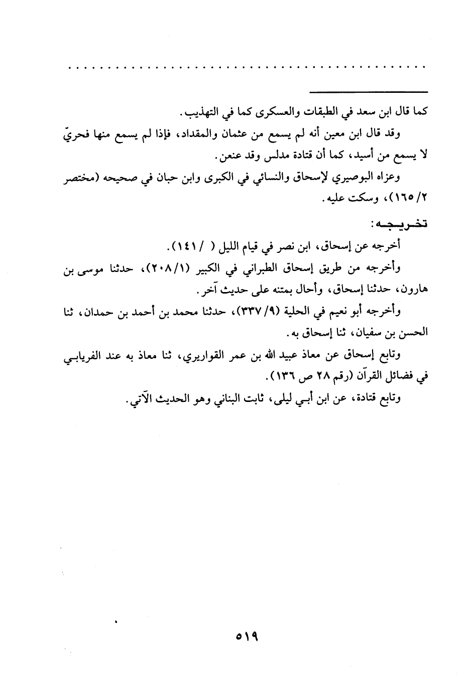 أخرجه عن إسحاق، ابن نصر في قيام الليل (/141).