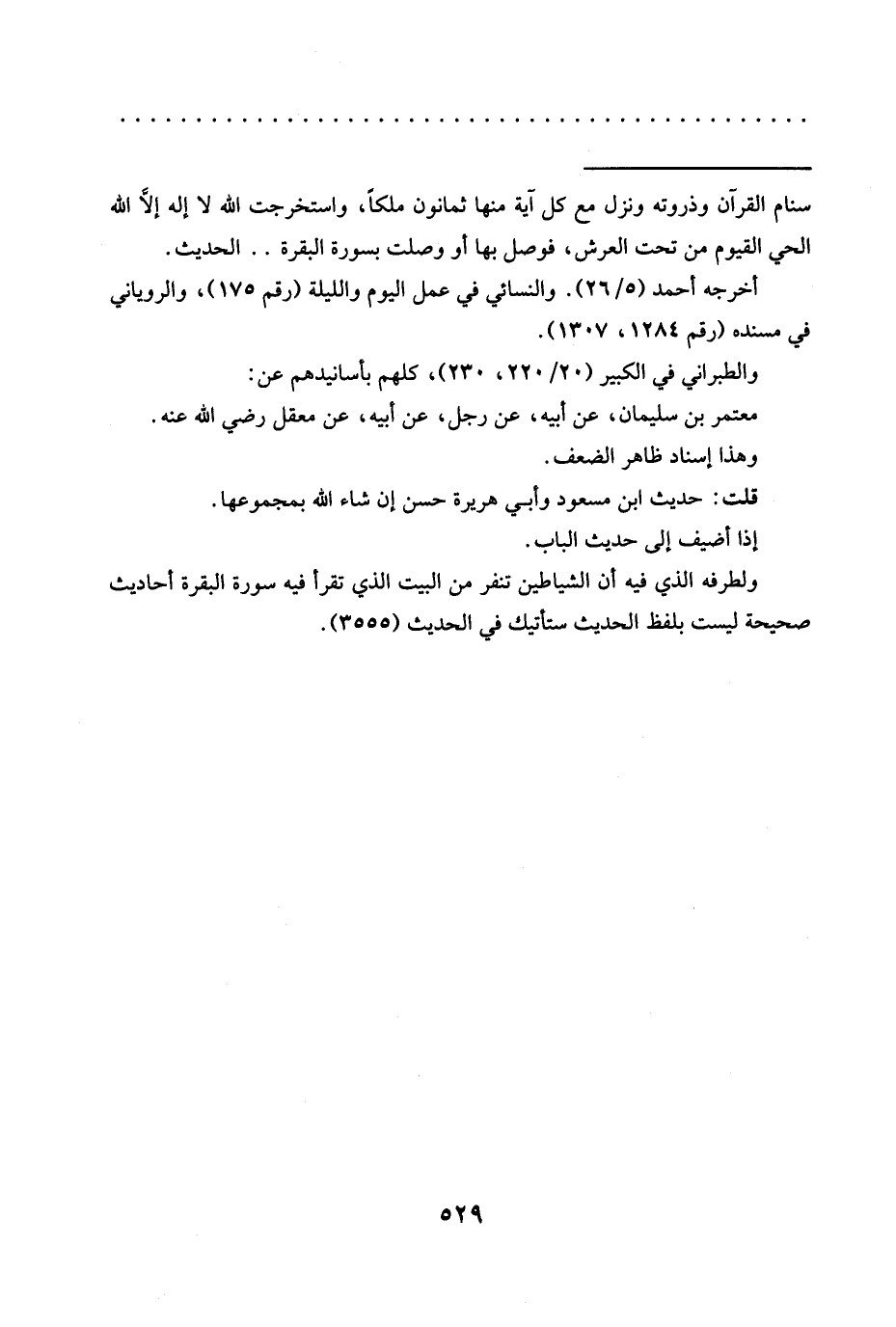 ولطرفه الذي فيه أن الشياطين تنفر مِنَ الْبَيْتِ الَّذِي تُقْرَأُ فِيهِ سُورَةُ الْبَقَرَةِ أحاديث صحيحة ليست بلفظ الحديث ستأتيك في الحديث (3555).