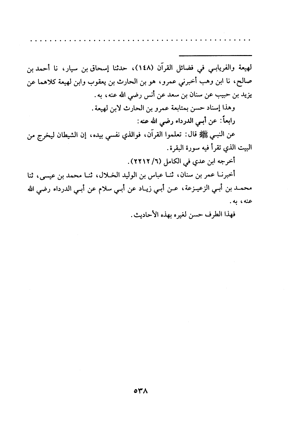 = لهيعة والفريابي في فضائل القرآن (148)، حدّثنا إسحاق بن سيار، نا أحمد بن صالح، نا ابن وهب أخبرني عمرو، هو بن الحارث بن يعقوب وابن لهيعة كلاهما عن يزيد بن حبيب عن سنان بن سعد عن أن رضي الله عنه، به.