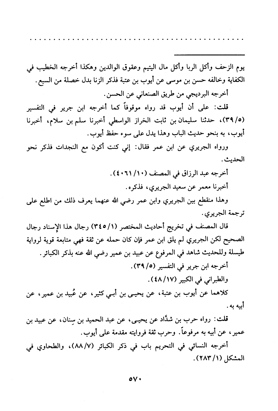 = يوم الزحف وأكل الربا وأكل مال اليتيم وعقوق الوالدين وهكذا أخرجه الخطيب في الكفاية وخالفه حسن بن موسى عن أيوب بن عتبة فذكر الزنا بدل خصلة من السبع.
