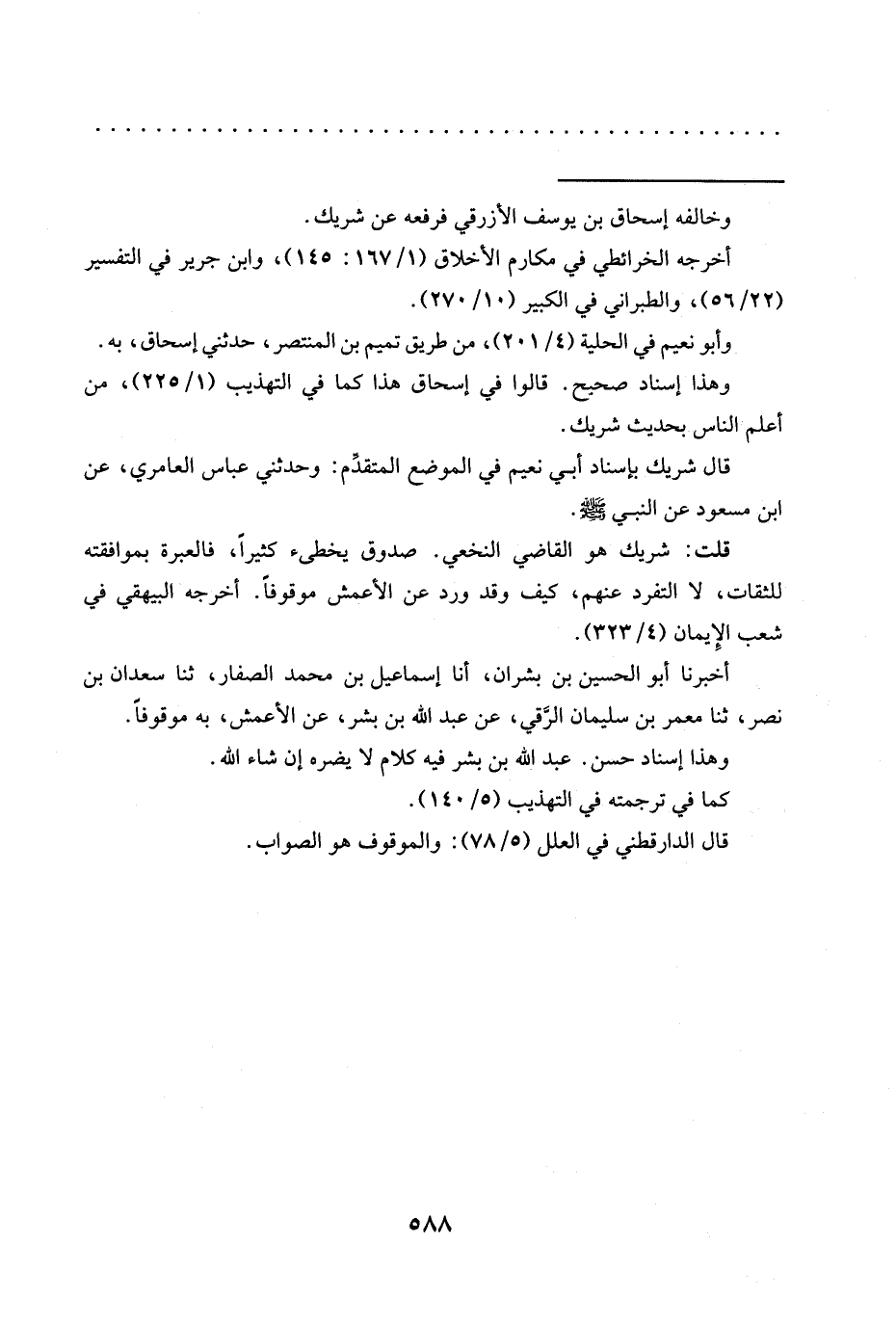 = وخالفه إسحاق بن يوسف الأزرقي فرفعه عن شريك.