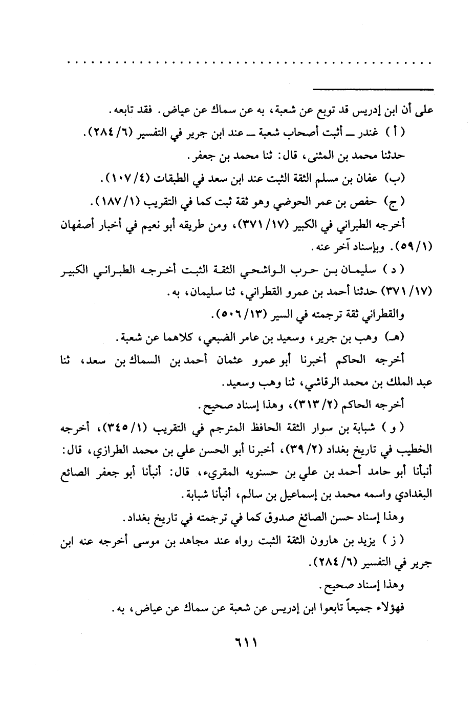 فهؤلاء جميعًا تابعوا ابن إِدْرِيسَ عَنْ شُعْبَةَ عَنْ سِمَاكٍ عَنْ عِيَاضٍ، به. =