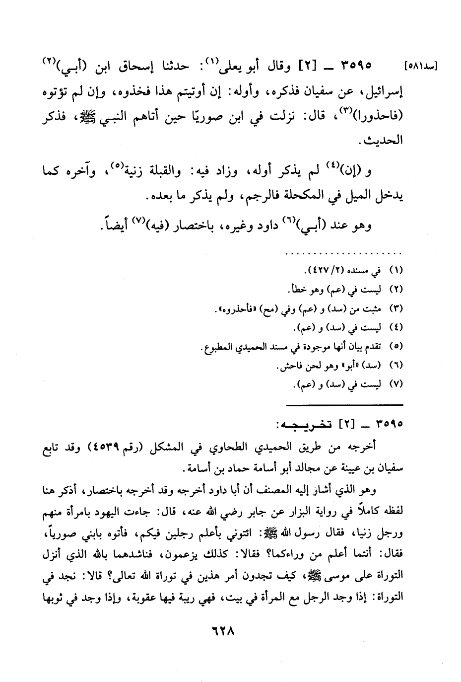 3595 - [2] وقال أبو يعلى (¬1): حدّثنا إسحاق ابْنُ (أَبِي) (¬2) إِسْرَائِيلَ، عَنْ سُفْيَانَ فَذَكَرَهُ، وَأَوَّلَهُ: إِنْ أُوتِيتُمْ هَذَا فَخُذُوهُ، وَإِنْ لَمْ تُؤْتَوْهُ (فاحذورا) (¬3)، قال: نزلت في ابن صُورِيَا حِينَ أَتَاهُمُ النَّبِيِّ -صَلَّى اللَّهُ عَلَيْهِ وَسَلَّمَ-، فَذَكَرَ الْحَدِيثَ.