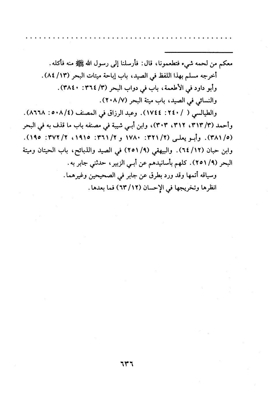 وابن حبّان (12/ 64). والبيهقي (9/ 251) في الصيد والذبائح، باب الحيتان وميتة البحر (9/ 251). كلهم بأسانيدهم عن أبي الزبير، حدثني جابر به.