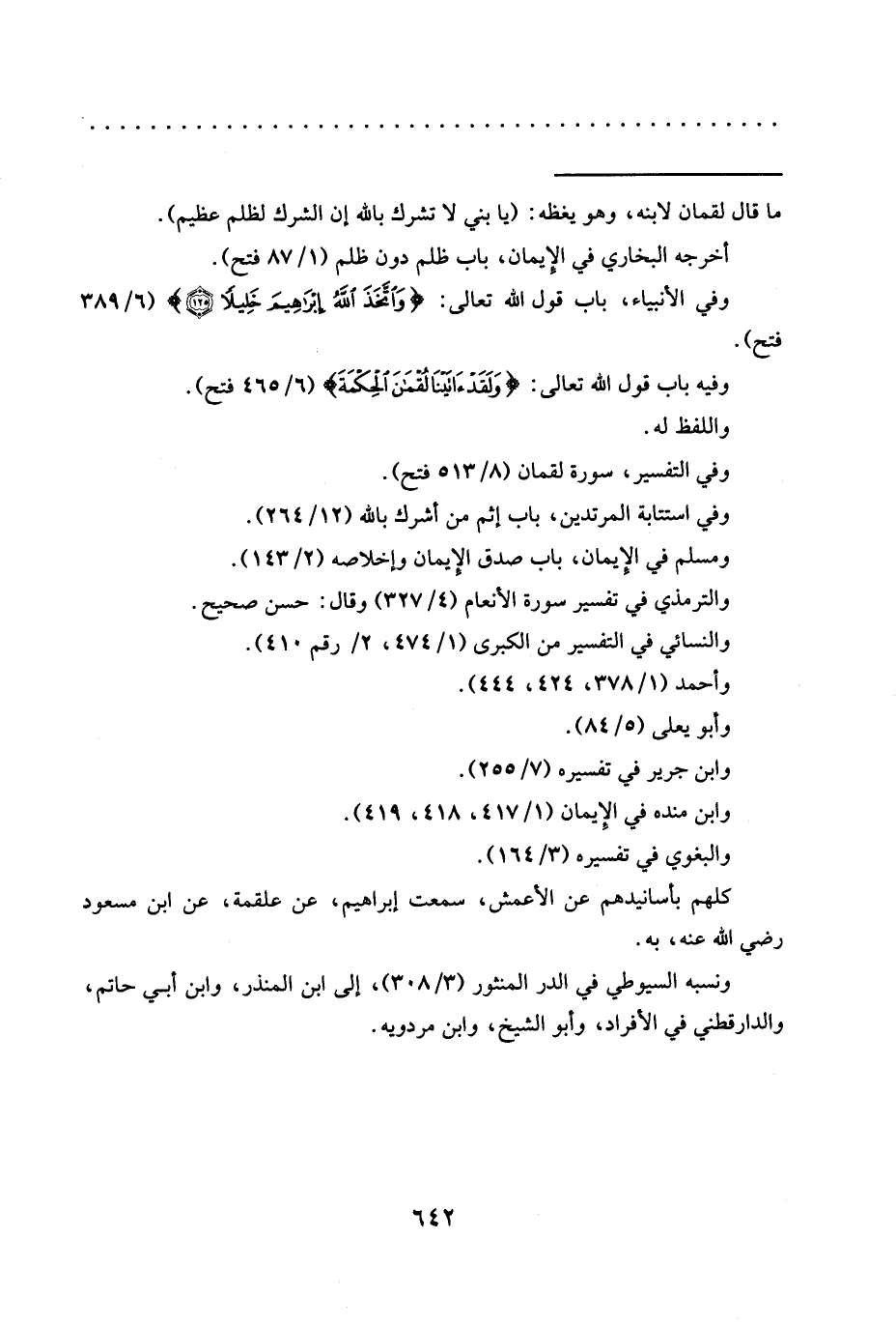 وفيه باب قول الله تعالى: {وَلَقَدْ آتَيْنَا لُقْمَانَ الْحِكْمَةَ} (6/ 465 فتح). واللفظ له.