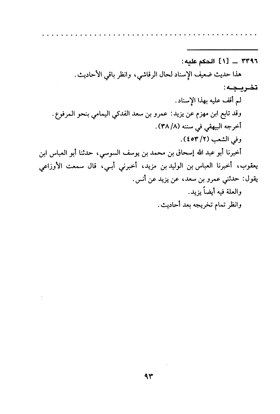 أخبرنا أبو عبد الله إسحاق بن محمد بن يوسف السوسي، حدّثنا أبو العباس ابن يعقوب، أخبرنا العباس بن الوليد بن مزيد، أخبرني أبي، قال سمعت الأوزاعي يقول: حدثني عمرو بن سعد، عن يزيد عن أنس.