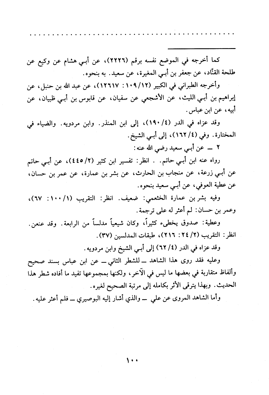رواه عنه ابن أبي حاتم .. انظر: تفسير ابن كثير (2/ 445)، عن أبي حاتم عن أبي زرعة، عن منجاب بن الحارث، عن بشر بن عمارة، عن عمر بن حسان، عن عطية العوفي، عن أبي سعيد بنحوه.
