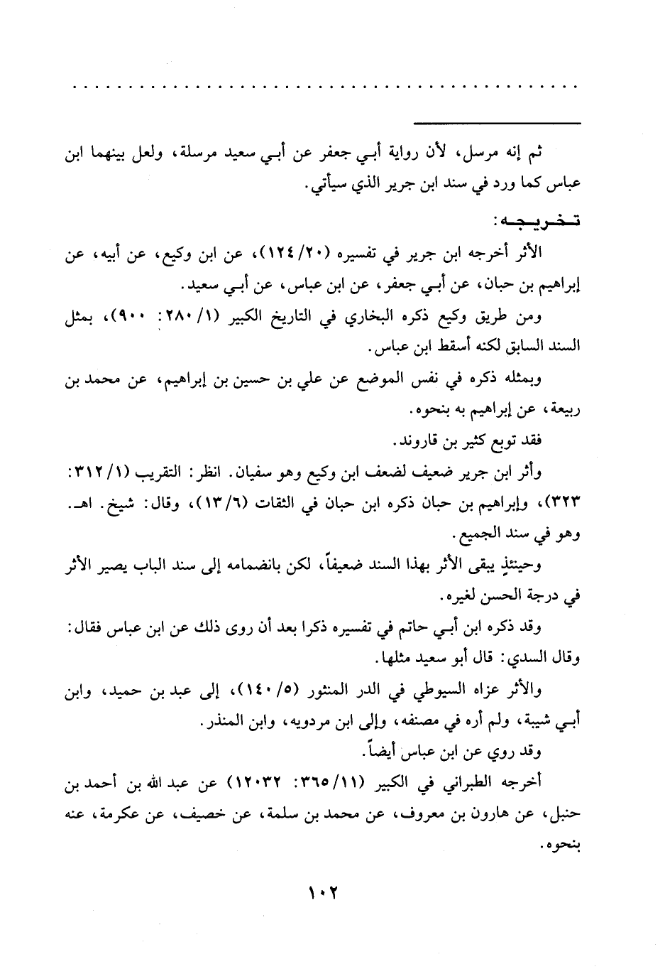 = ثم إنه مرسل؛ لأن رواية أبي جعفر عن أبي سعيد مرسلة، ولعل بينهما ابن عباس كما ورد في سند ابن جرير الذي سيأتي.