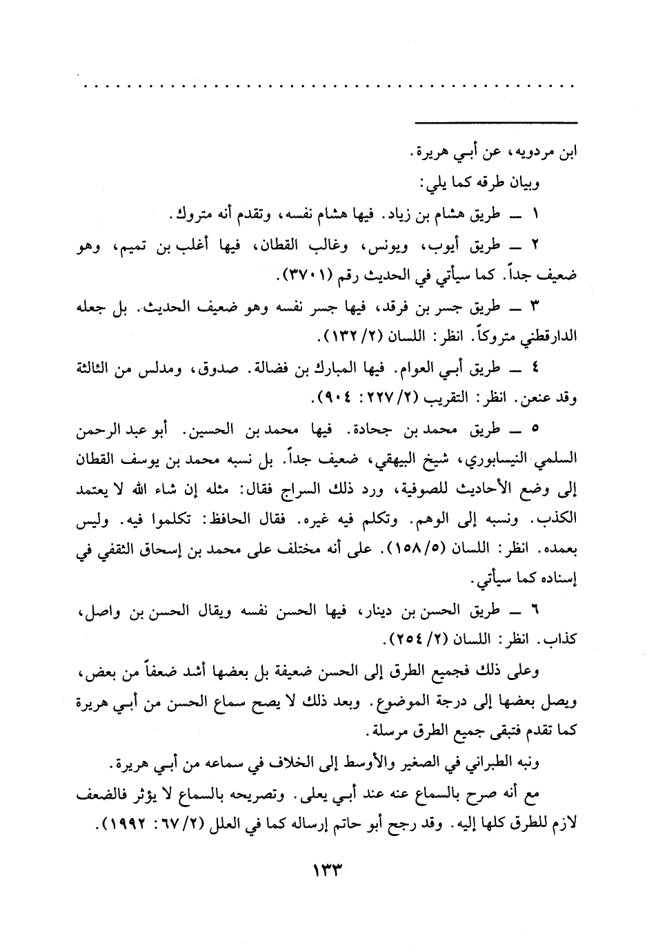 3 - طريق جسر بن فرقد، فيها جسر نفسه وهو ضعيف الحديث. بل جعله الدارقطني متروكًا. انظر: اللسان (2/ 132).