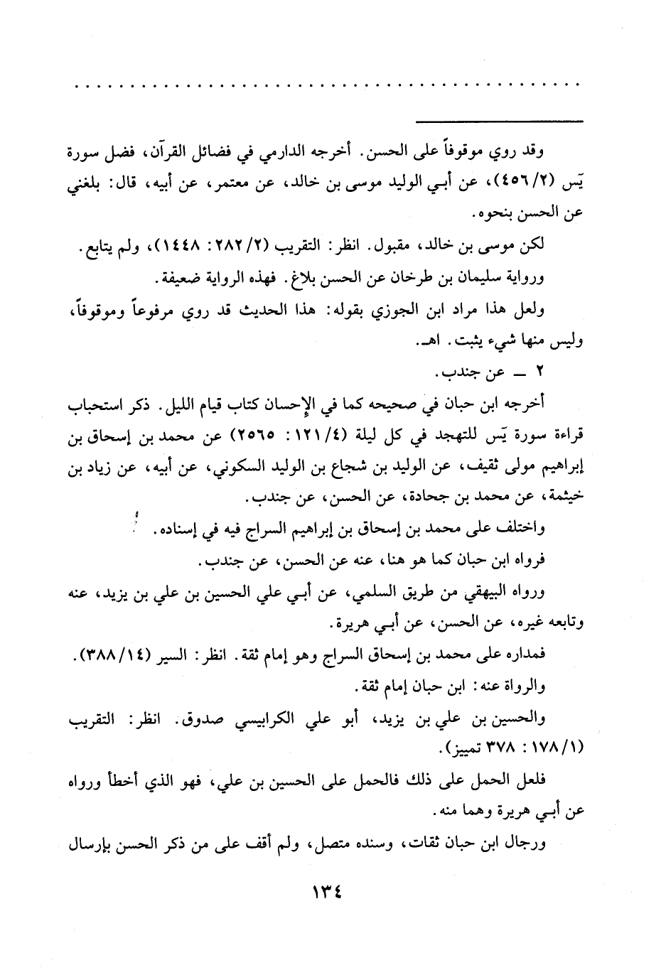 ورواية سليمان بن طرخان عن الحسن بلاغ. فهذه الرواية ضعيفة.