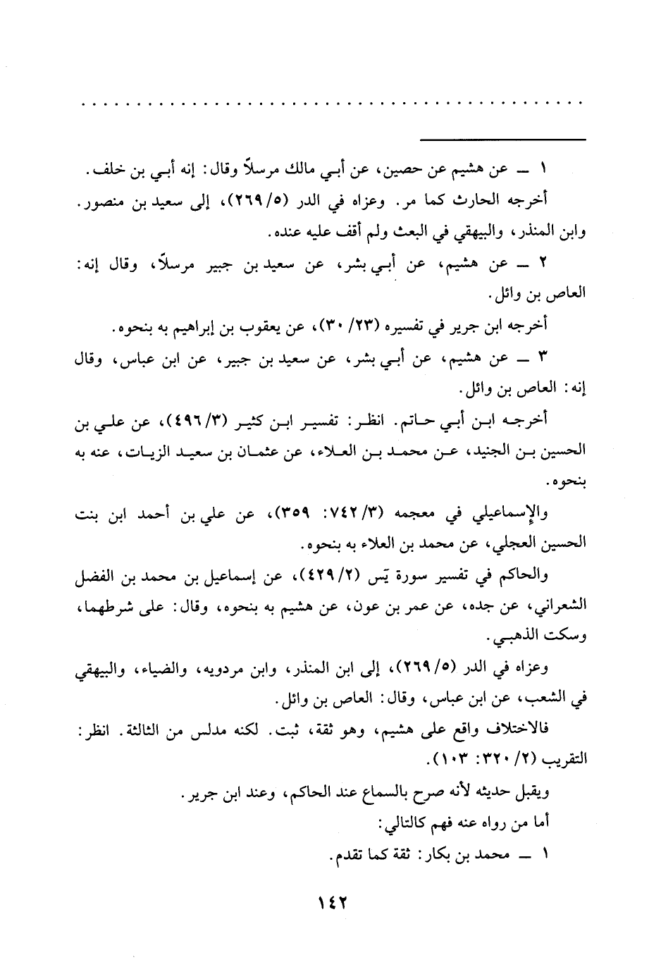 3 - عن هشيم، عَنْ أَبِي بِشْرٍ، عَنْ سَعِيدِ بْنِ جُبَيْرٍ، عَنِ ابْنِ عباس، وقال إنه: العاص بن وائل.