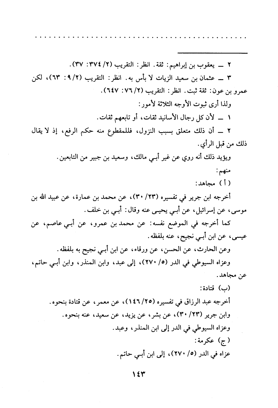 ويؤيد ذلك أنه روي عن غير أبي مالك، وسعيد بن جبير من التابعين.