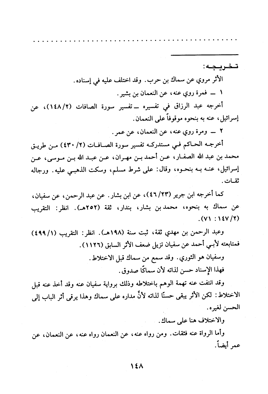 وقد انتفت عنه تهمة الوهم باختلاطه وذلك برواية سفيان عنه وقد أخذ عنه قبل الاختلاط: لكن الأثر يقى حسنًا لذاته لأنَّ مداره على سماك وهذا يرقى أثر الباب إلى الحسن لغيره.