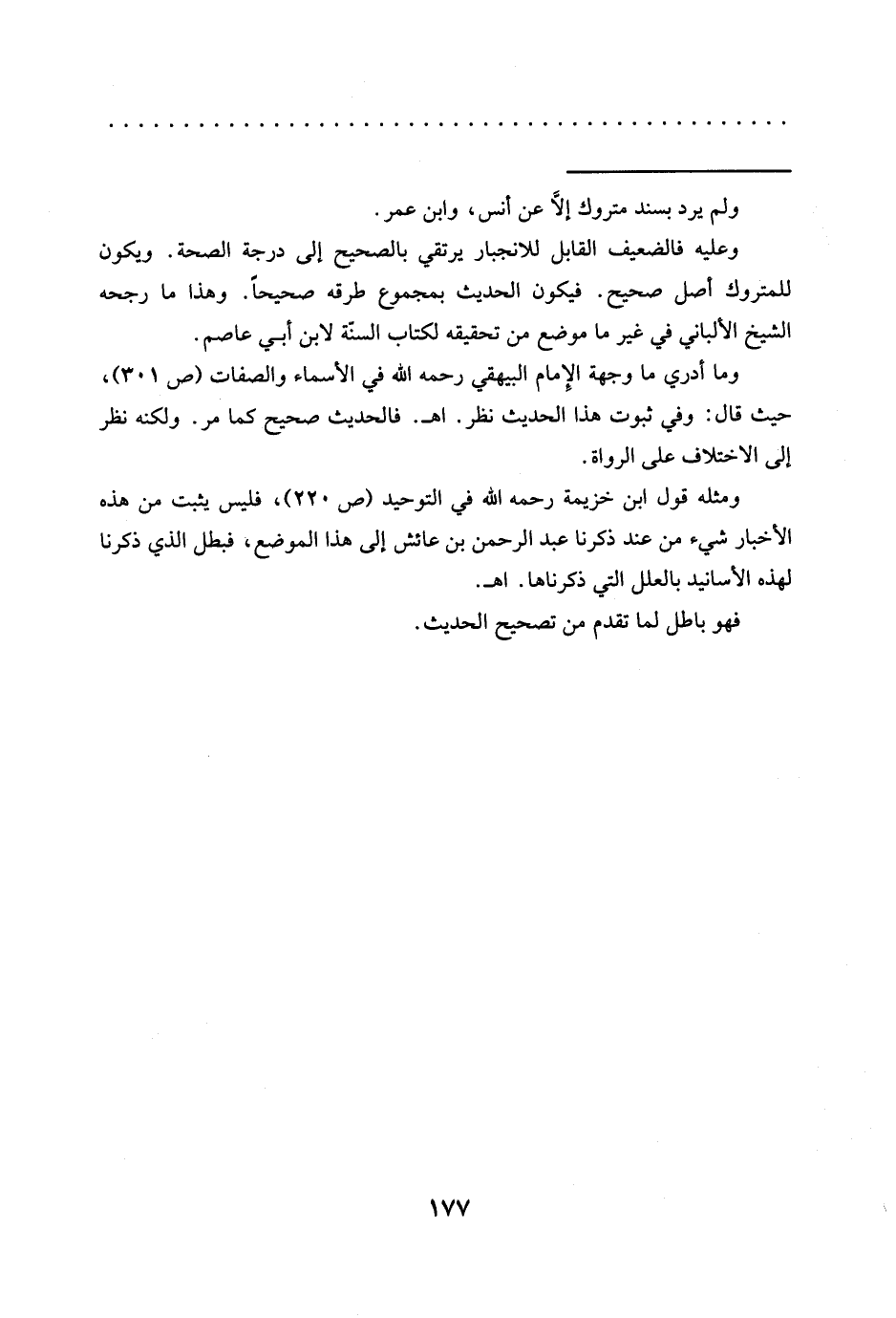 ومثله قول ابن خزيمة رحمه الله في التوحيد (ص 220)، فليس يثبت من هذه الأخبار شيء من عند ذكرنا عبد الرحمن بن عائش إلى هذا الموضع، فبطل الذي ذكرنا لهذه الأسانيد بالعلل التي ذكرناها. اهـ.