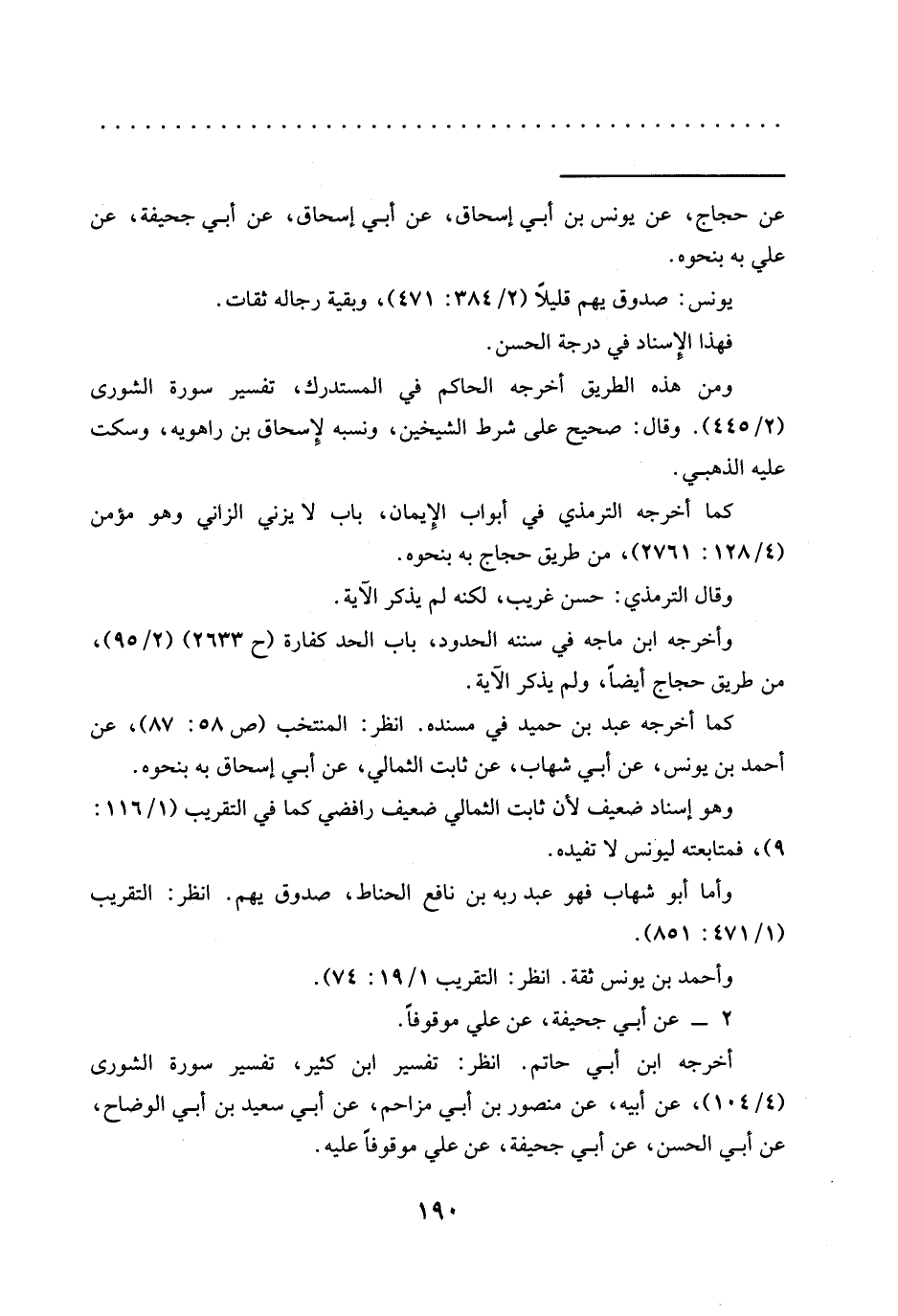 ومن هذه الطريق أخرجه الحاكم في المستدرك، تفسير سورة الشورى (2/ 445). وقال: صحيح على شرط الشيخين، ونسبه لإِسحاق بن راهويه، وسكت عليه الذهبي.