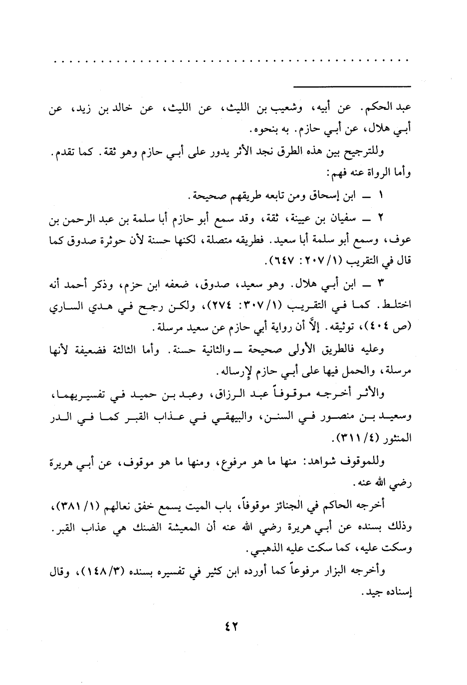 وللترجيح بين هذه الطرف نجد الأثر يدور على أبي حازم وهو ثقة. كما تقدم.