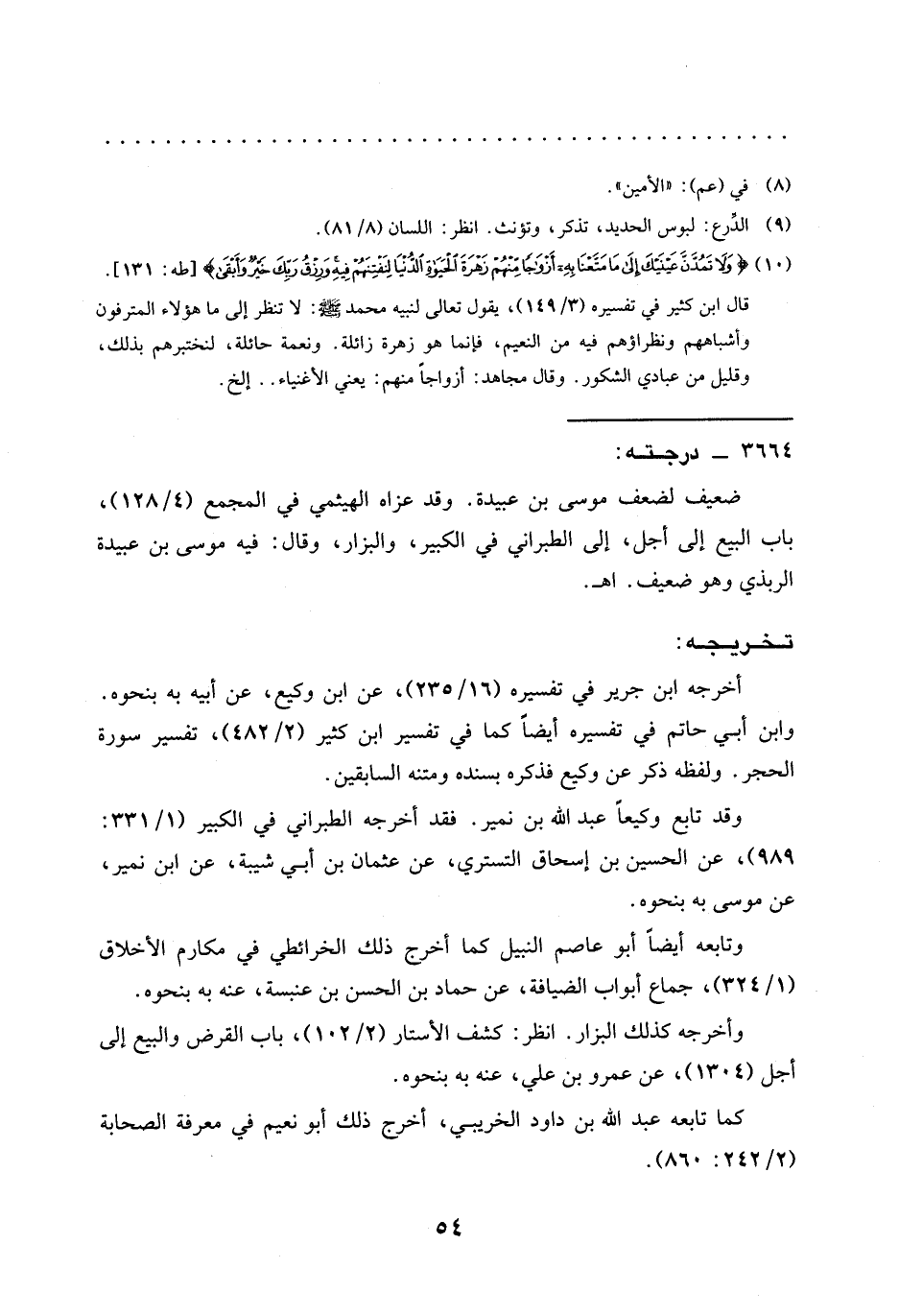 وقد تابع وكيعًا عبد الله بن نمير. فقد أخرجه الطبراني في الكبير (1/ 331: 989)، عن الحسين بن إسحاق التستري، عن عثمان بن أبي شيبة، عن ابن نمير، عن موسى به بنحوه.