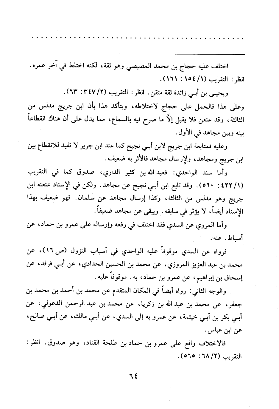 وعلى هذا فالحمل على حجاج لاختلاطه، ويتأكد هذا بأن ابن جريج مدلس من الثالثة، وقد عنعن فلا يقبل إلَّا ما صرح فيه بالسماع، مما يدل على أن هناك انقطاعًا بينه وبين مجاهد في الأول.