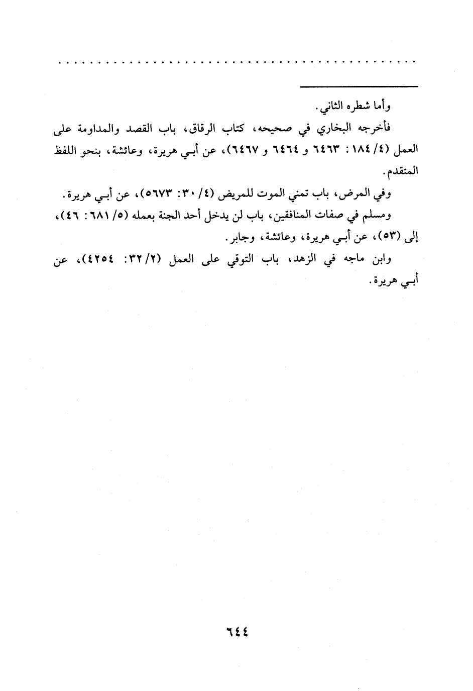 وابن ماجه في الزهد، باب التوقي على العمل (2/ 32: 4254)، عن أبي هريرة.