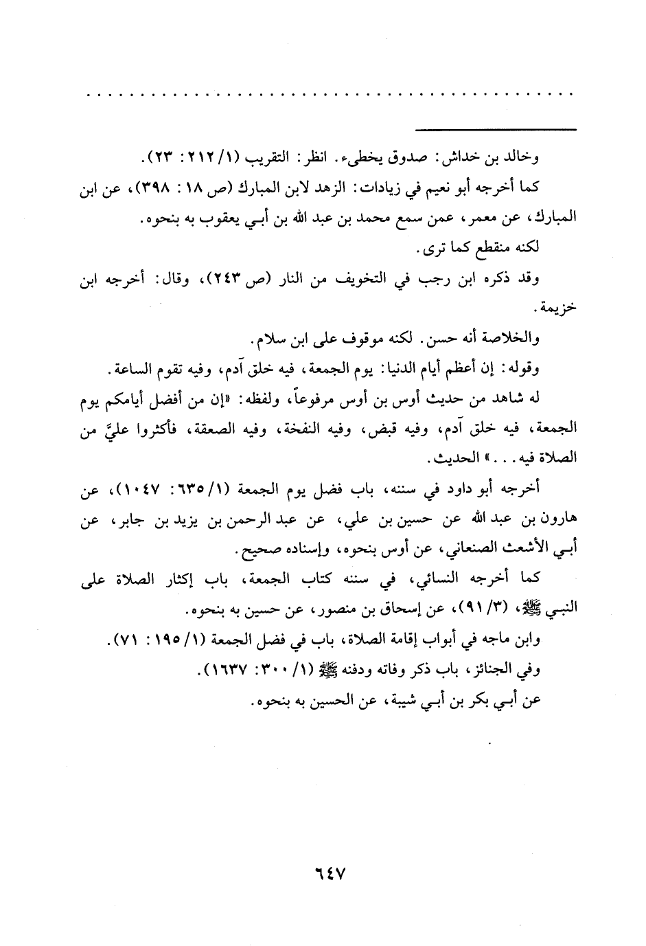 أخرجه أبو داود في سننه، باب فضل يوم الجمعة (1/ 635: 1047)، عن هارون بن عبد الله عن حسين بْنُ عَلِيٍّ، عَنْ عَبْدِ الرَّحْمَنِ بْنِ يَزِيدَ بْنِ جَابِرٍ، عن أبي الأشعث الصنعاني، عن أوس بنحوه، وإسناده صحيح.
