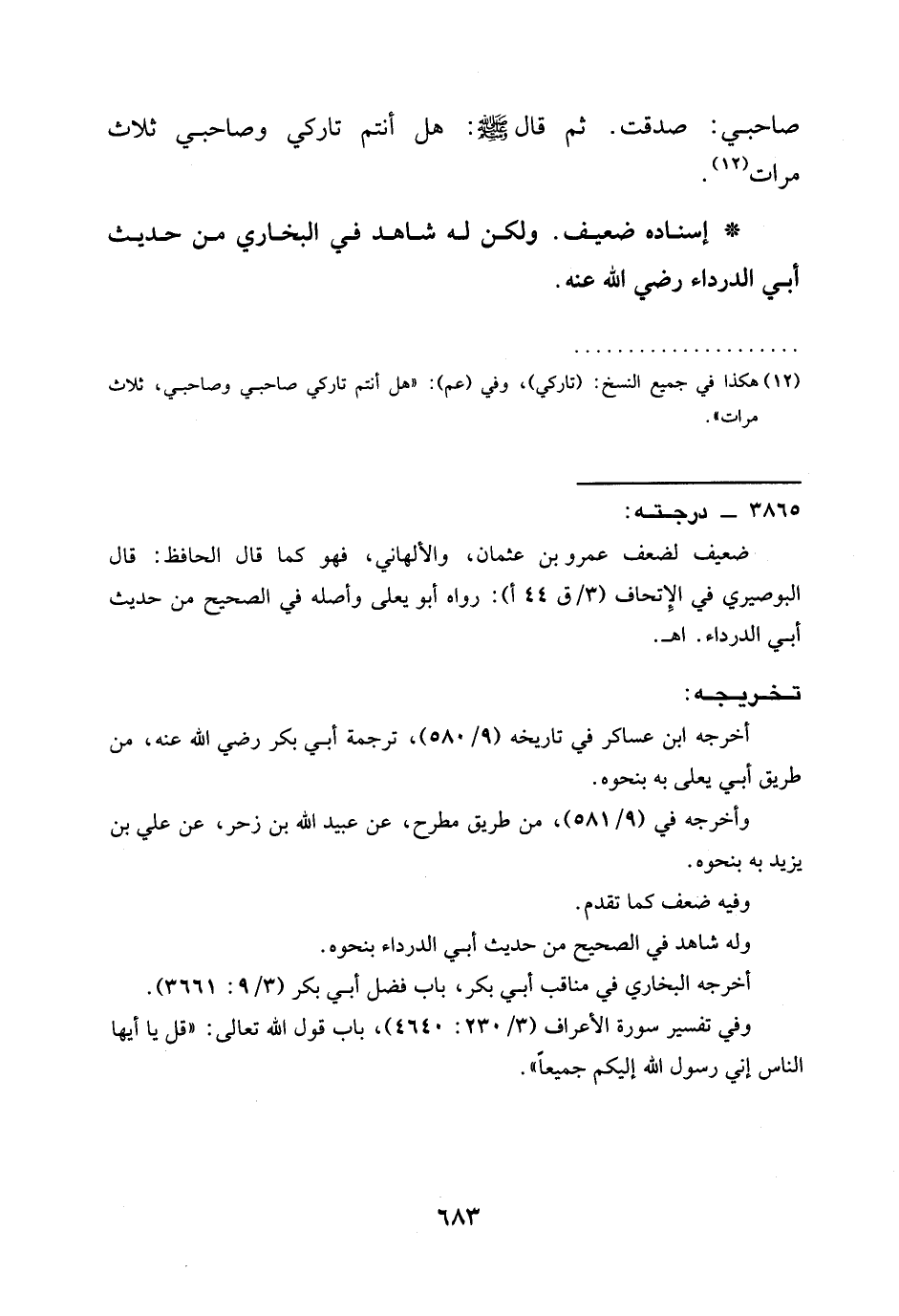 (¬12) هكذا في جميع النسخ: (تاركي)، وفي (عم): "هل أنتم تاركي صاحبي وصاحبي، ثلاث مرات".