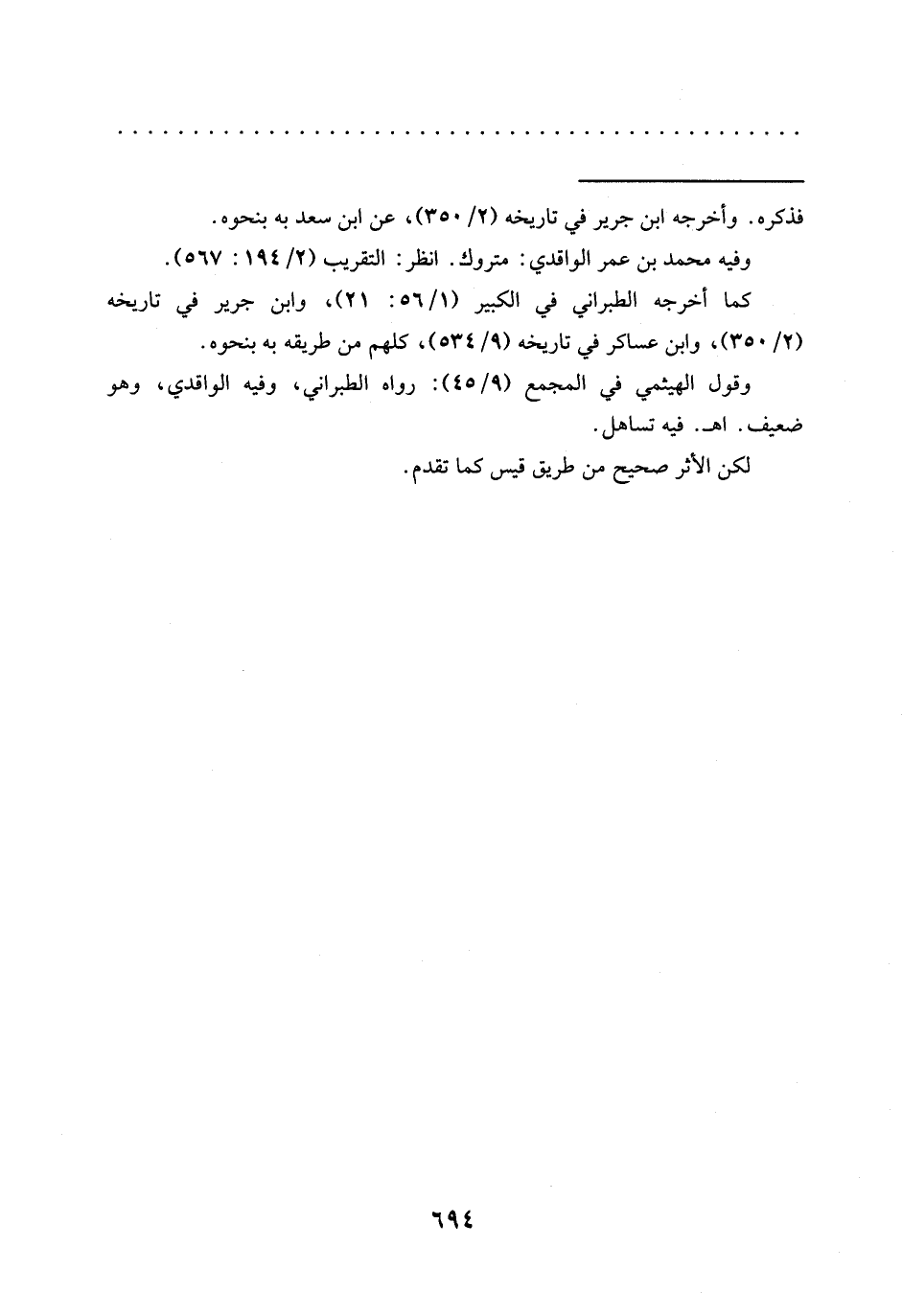 وقول الهيثمي في المجمع (9/ 45): رواه الطبراني، وفيه الواقدي، وهو ضعيف. اهـ. فيه تساهل.