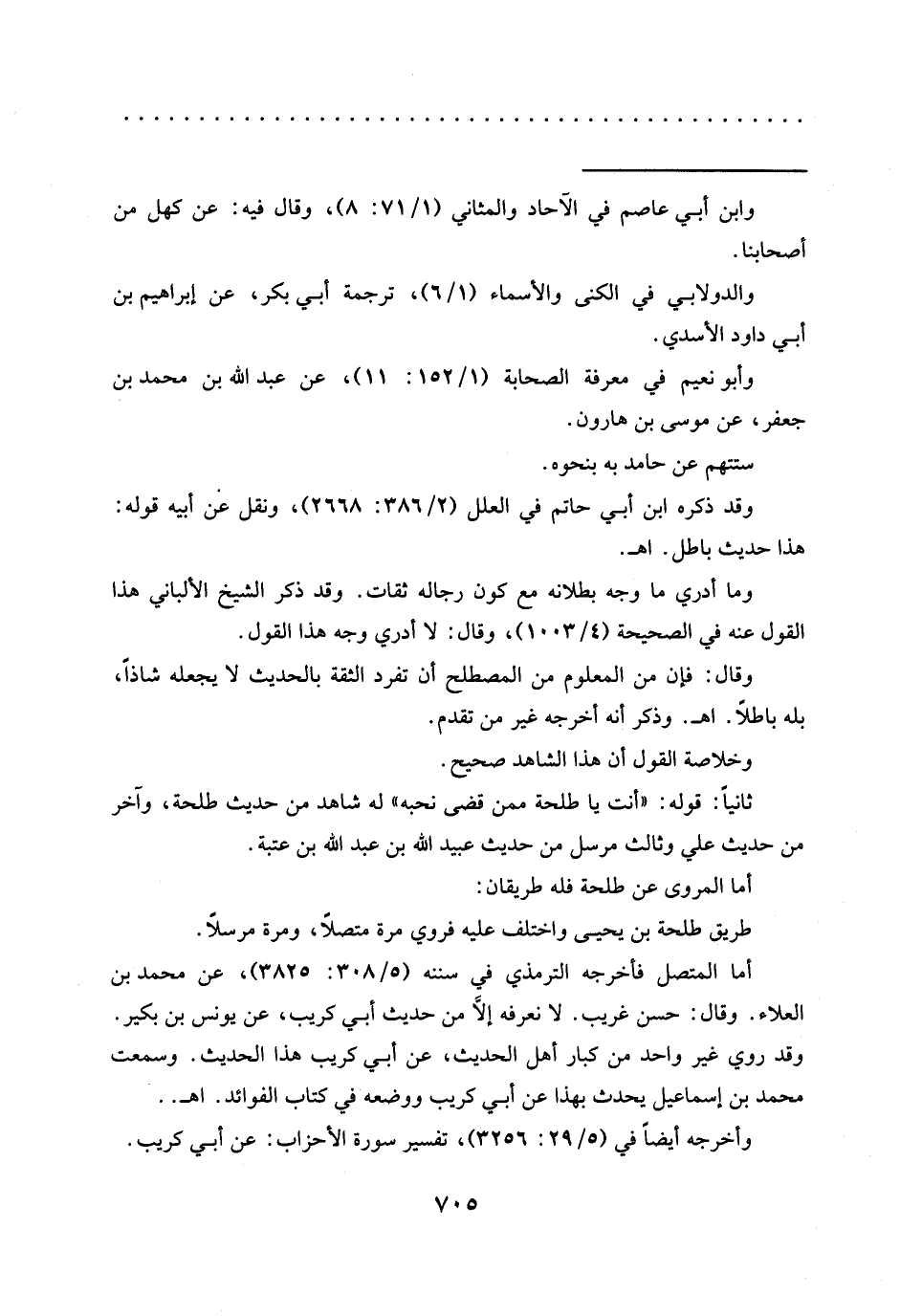 أما المروى عن طلحة فله طريقان: