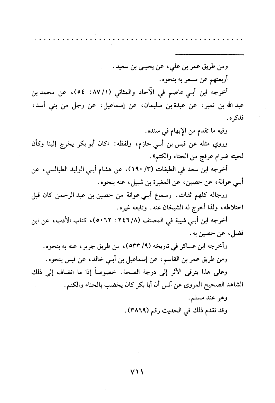 وعلى هذا يترقى الأثر إلى درجة الصحة. خصوصًا إذا ما انضاف إلى ذلك الشاهد الصحيح المروى عن أنس أن أبا بكر كان يخضب بالحناء والكتم.