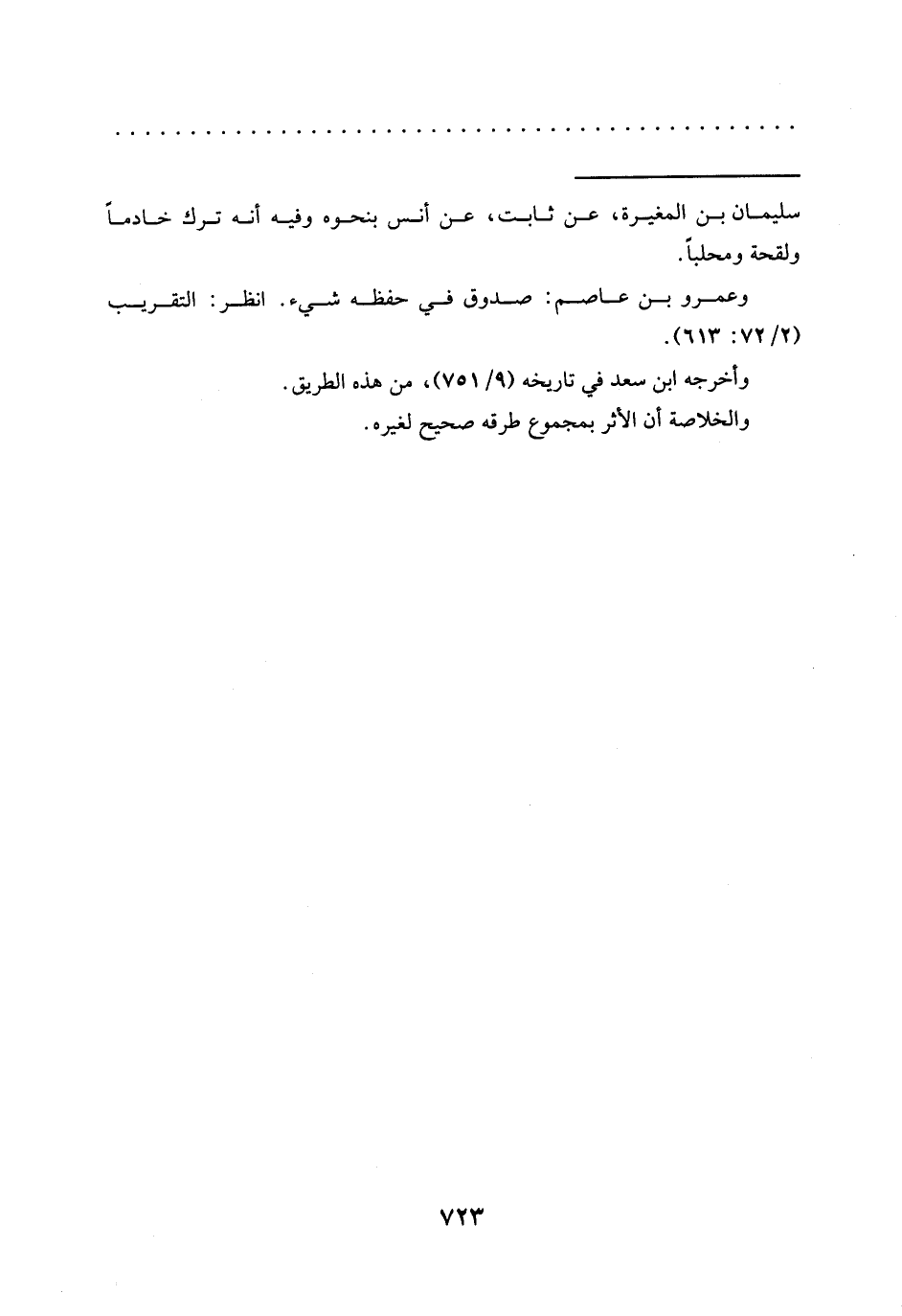 = سُلَيْمَانُ بْنُ الْمُغِيرَةِ، عَنْ ثَابِتٍ، عَنْ أَنَسٍ بنحوه وفيه أنه ترك خادمًا ولقحة ومحلبًا.
