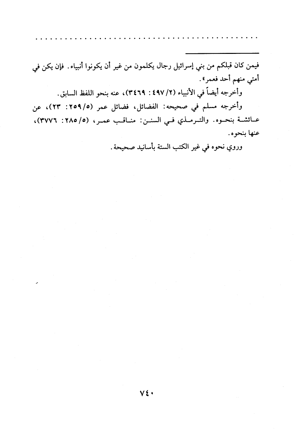 = فيمن كان قبلكم من بني إسرائيل رجال يكلمون من غير أن يكونوا أنبياء. فإن يكن في أمتي منهم أحد فعمر".