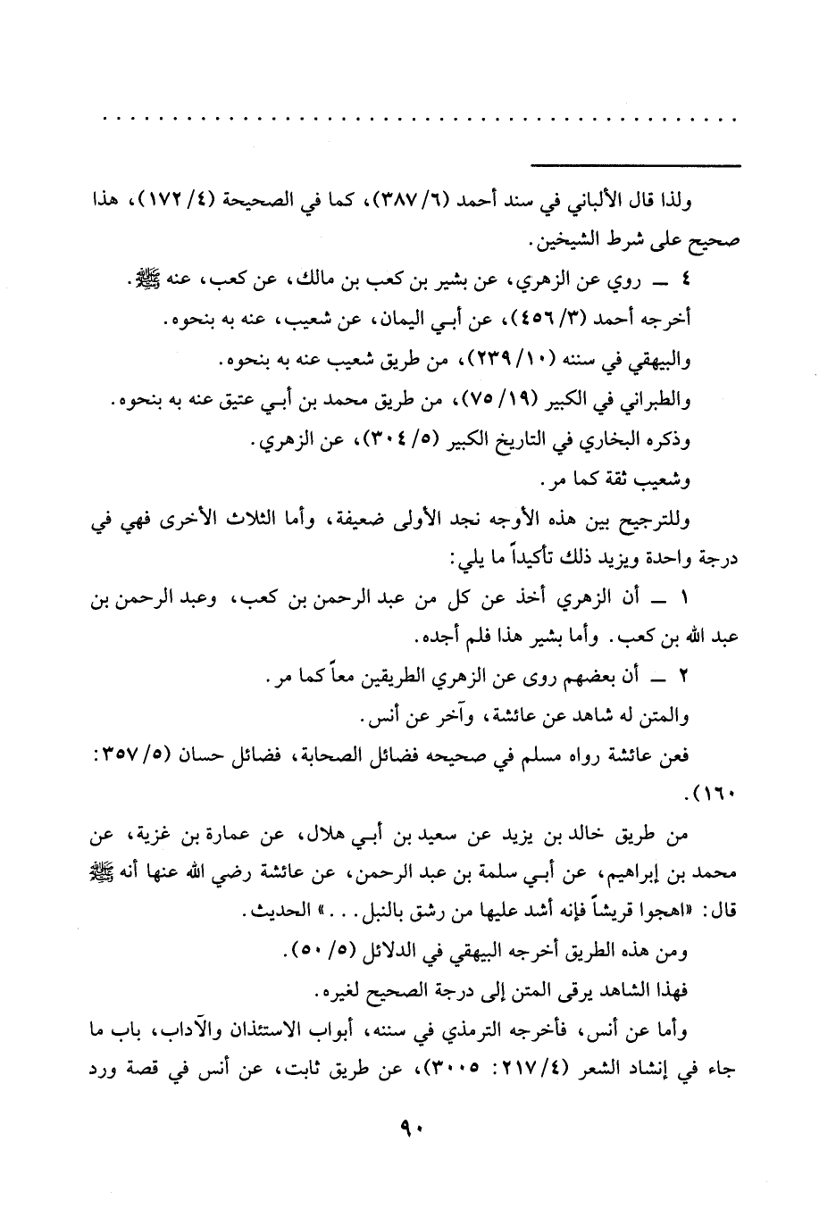 1 - أن الزهري أخذ عن كل من عبد الرحمن بن كعب، وعبد الرحمن بن عبد الله بن كعب. وأما بشير هذا فلم أجده.