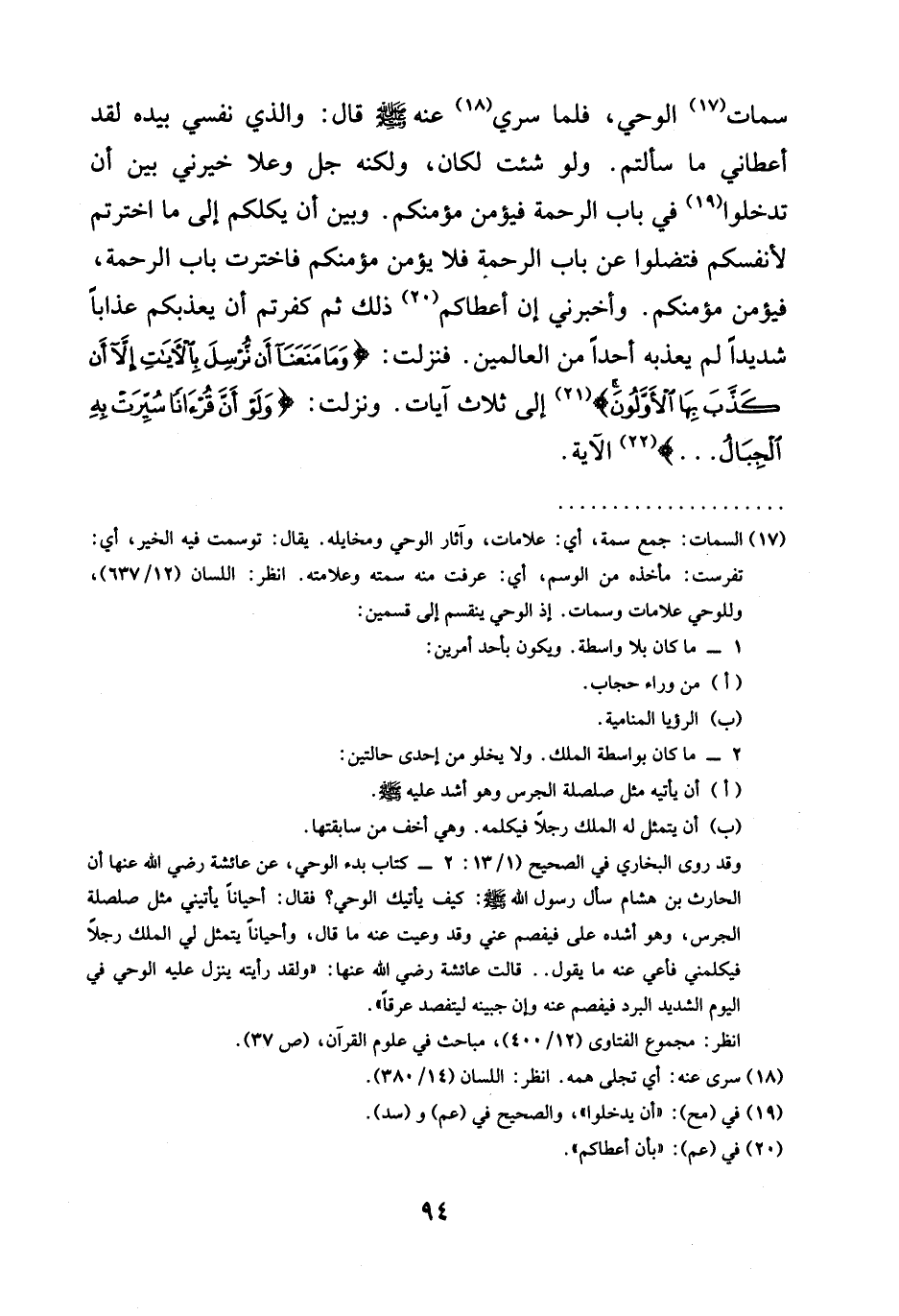 (¬1) السمات: جمع سمة، أي: علامات، وآثار الوحي ومخايله. يقال: توسمت فيه الخير، أي: تفرست: مأخذه من الوسم، أي: عرفت منه سمته وعلامته. انظر: اللسان (12/ 637)، وللوحي علامات وسمات. إذ الوحي ينقسم إلى قسمين: