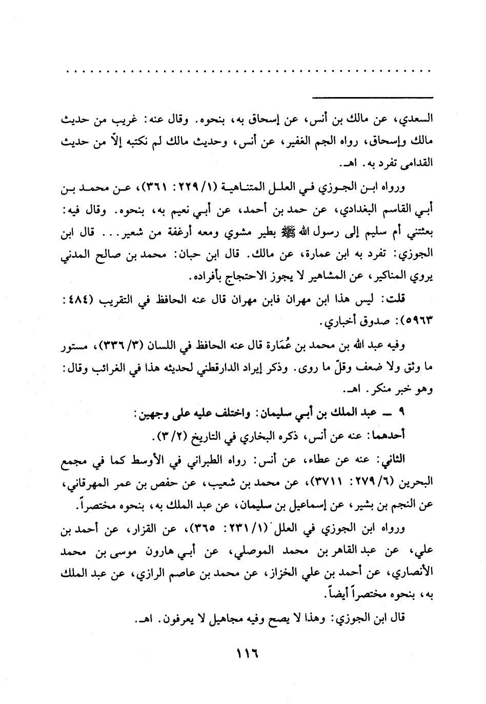 = السعدي، عن مالك بن أنس، عن إسحاق به، بنحوه. وقال عنه: غريب من حديث مالك وإسحاق، رواه الجم الغفير، عن أنس، وحديث مالك لم نكتبه إلاّ من حديث القدامى تفرد به. اهـ.