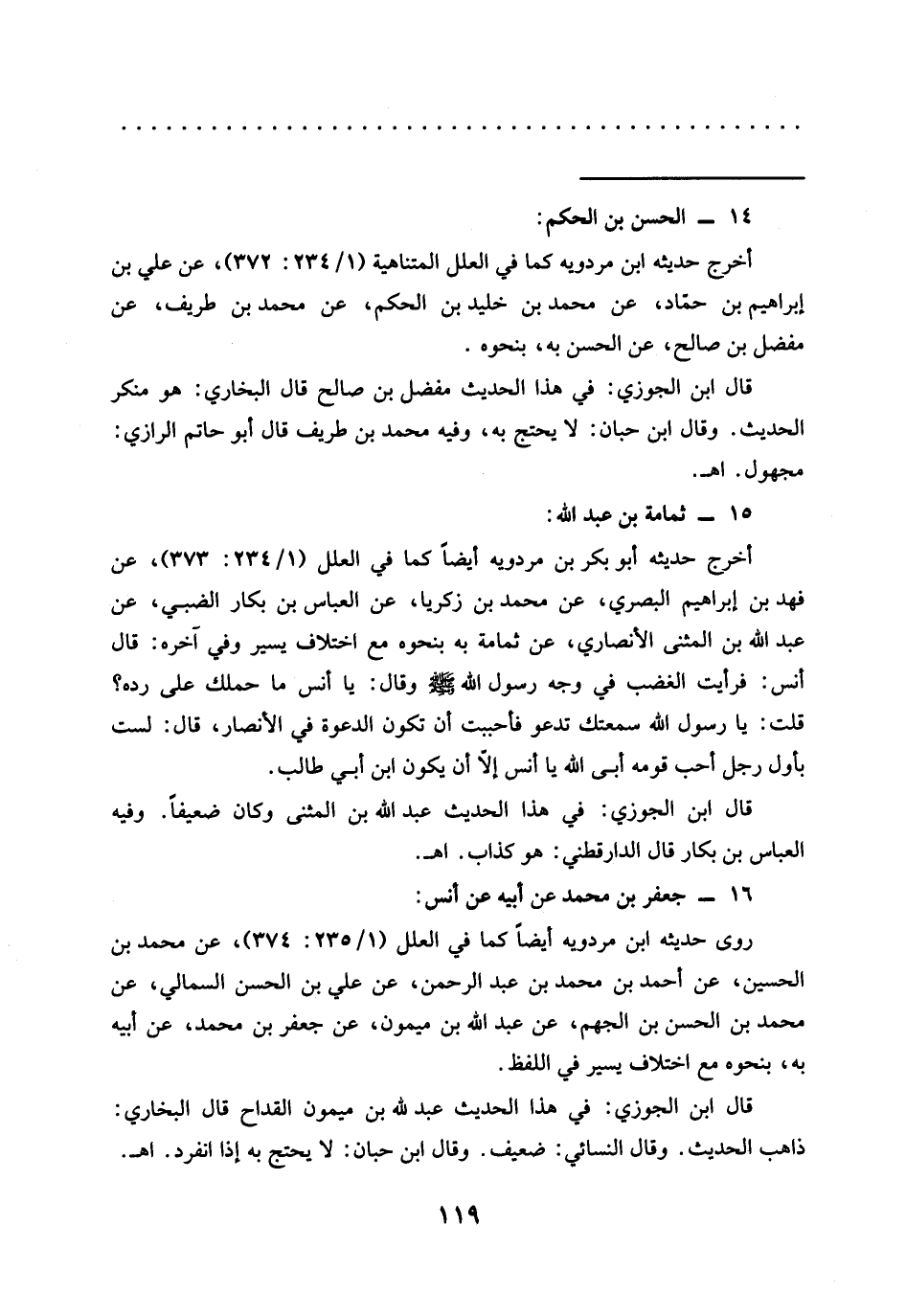 أخرج حديثه ابن مردويه كما في العلل المتناهية (1/ 234: 372)، عن علي بن إبراهيم بن حمّاد، عن محمد بن خليد بن الحكم، عن محمد بن طريف، عن مفضل بن صالح، عن الحسن به، بنحوه.