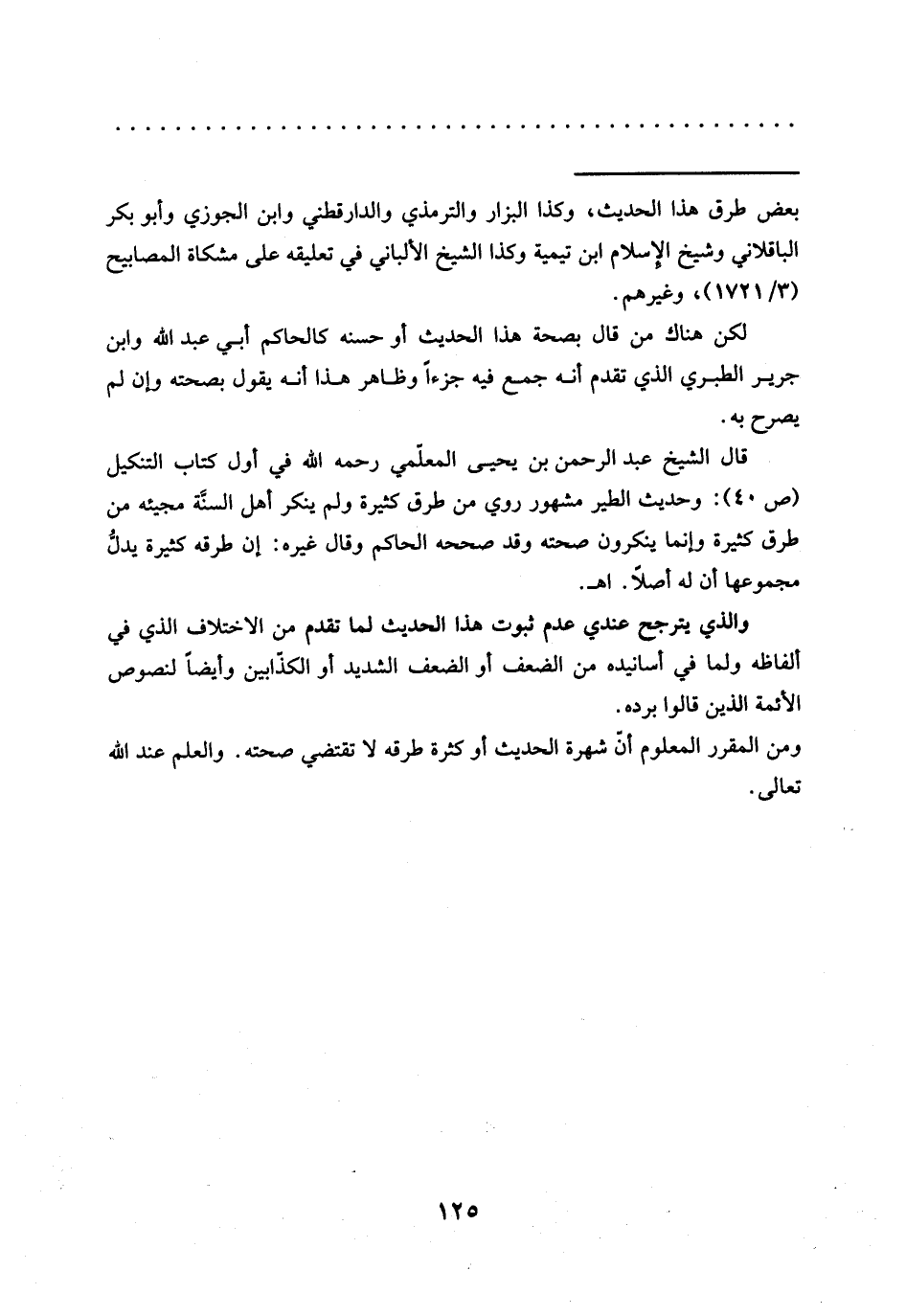 = بعض طرق هذا الحديث، وكذا البزّار والترمذي والدارقطني وابن الجوزي وأبو بكر الباقلاني وشيخ الإِسلام ابن تيمية وكذا الشيخ الألباني في تعليقه على مشكاة المصابيح (3/ 1721)، وغيرهم.