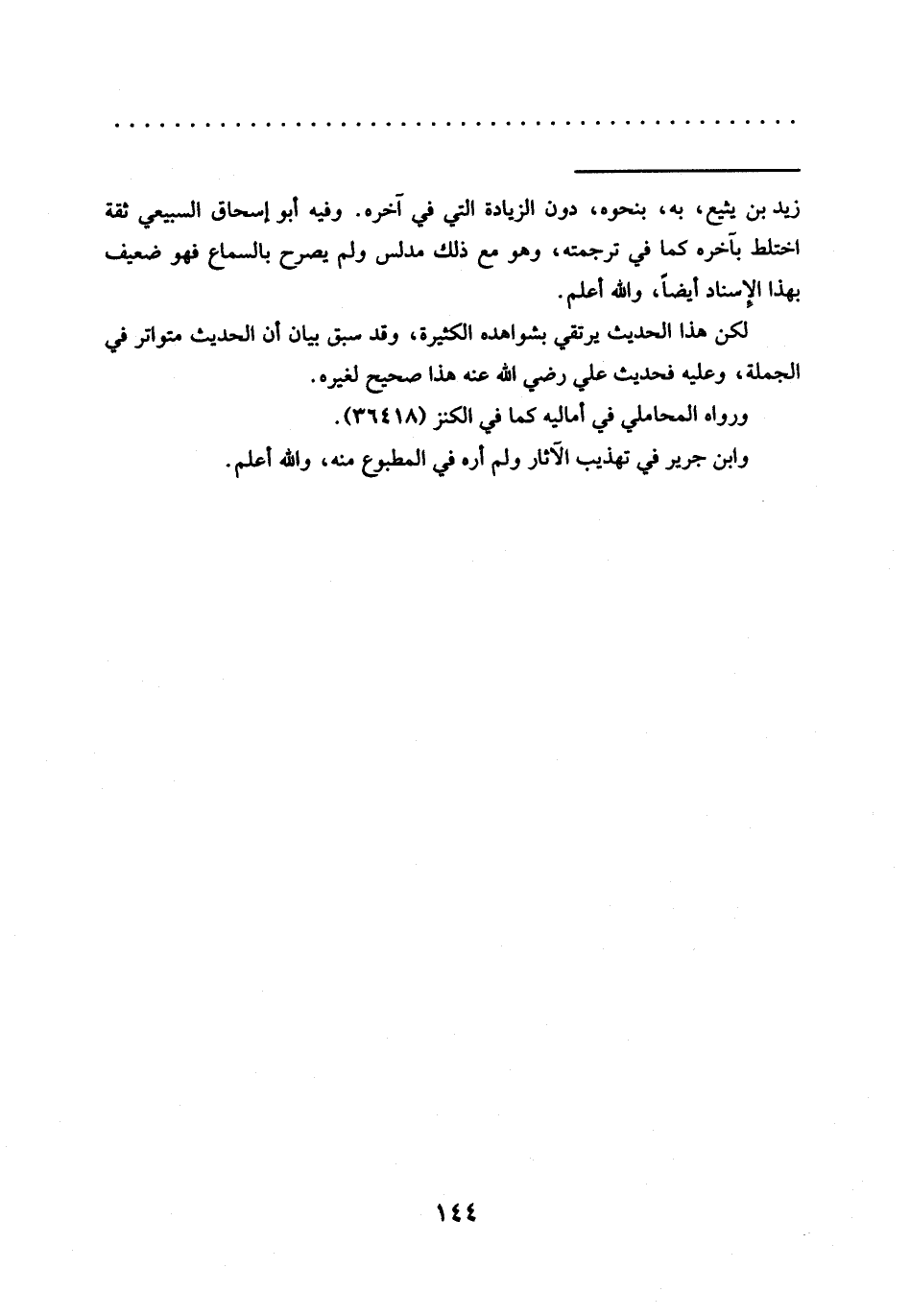 لكن هذا الحديث يرتقي بشواهده الكثيرة، وقد سبق بيان أن الحديث متواتر في الجملة، وعليه فحديث علي رضي الله عنه هذا صحيح لغيره.